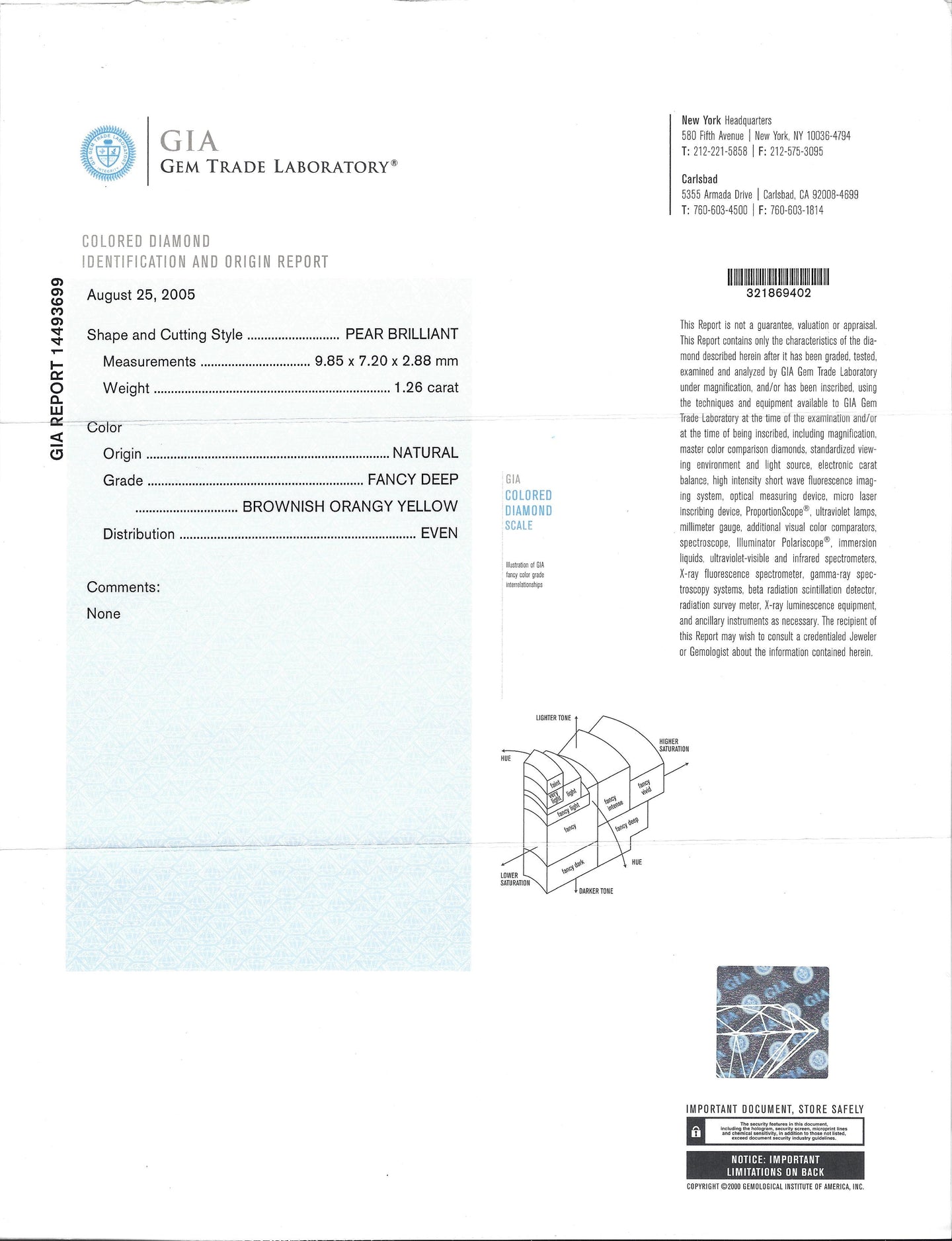 - Gem Stone: Diamond 1.26 carats Pear cut GIA No. 14493699