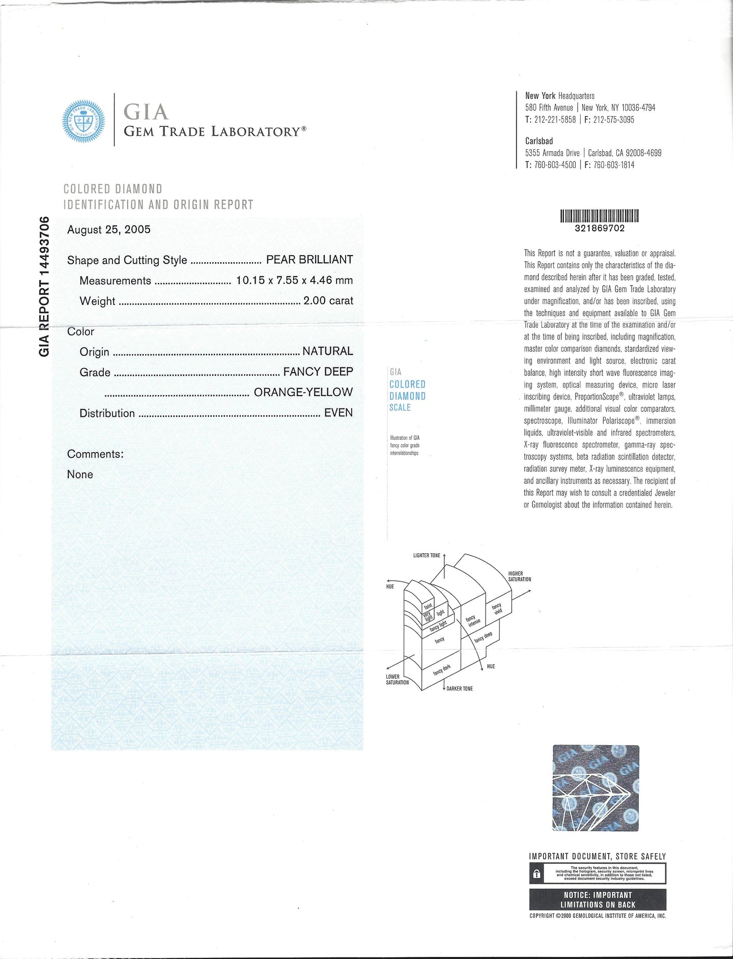 - Gem Stone: Diamond 2.00 carats Pear cut GIA No. 14493706