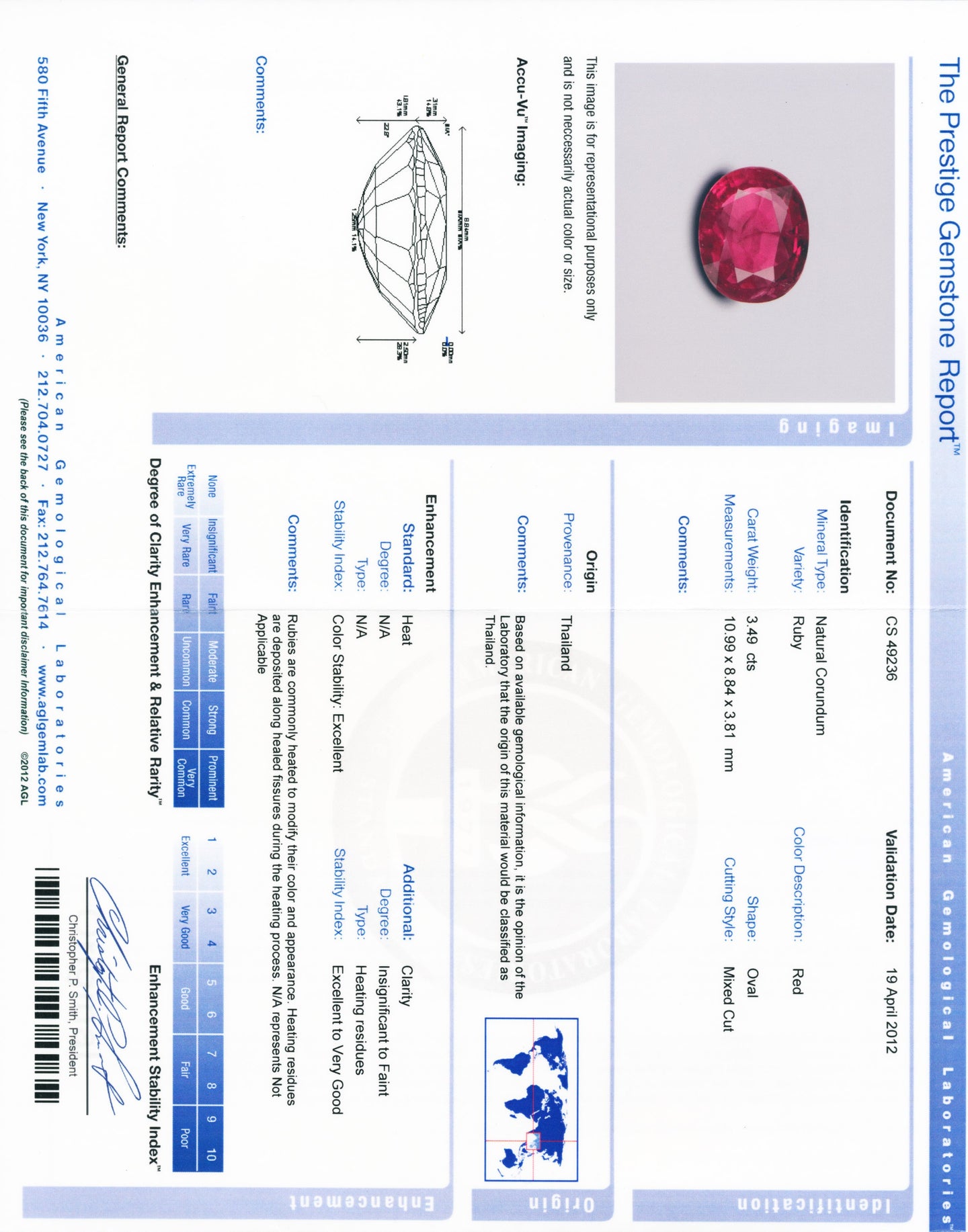 - Gem Stone: Center Ruby 3.49 carats Thai - Insignificant Heat AGL CS49236