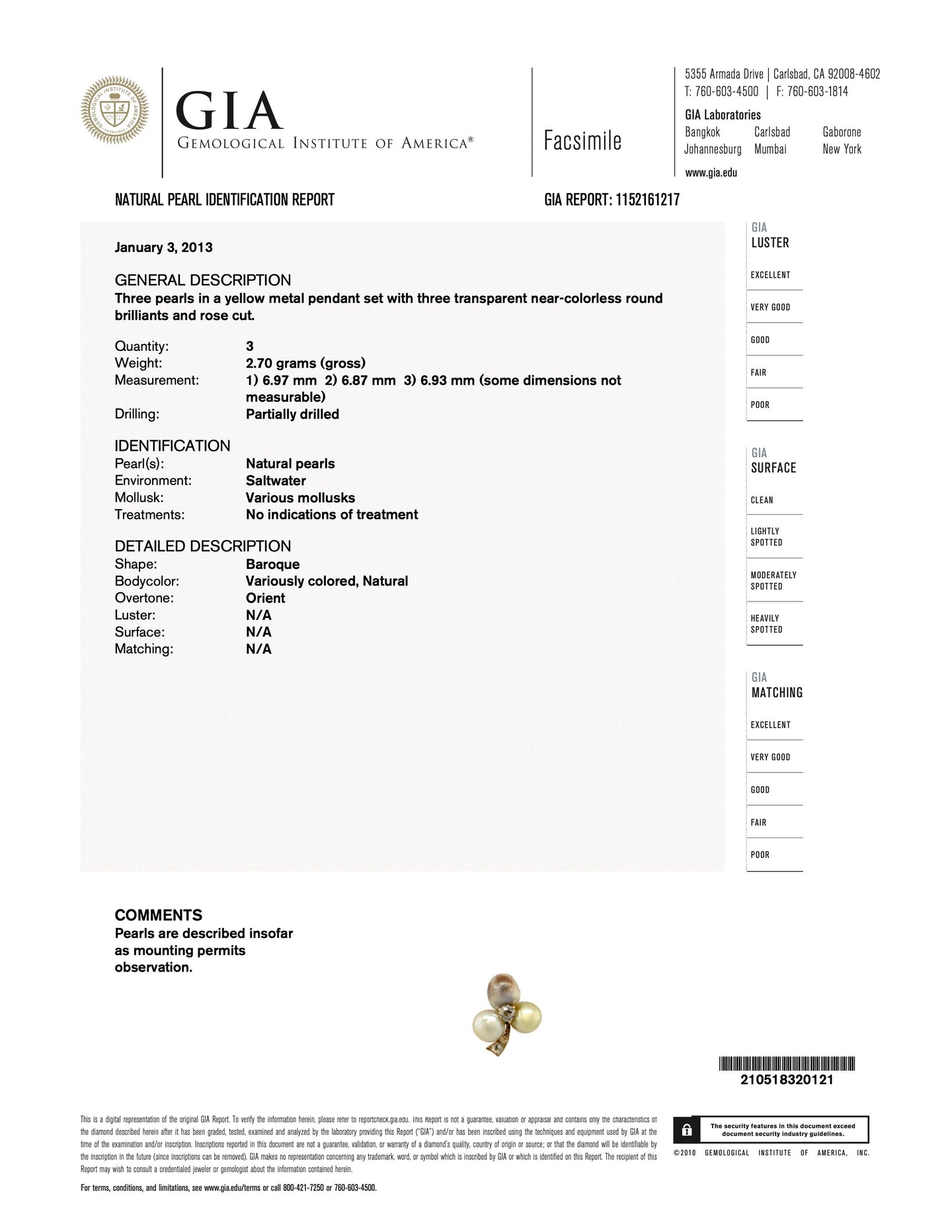 - Gem Stone: Pearl 6.87 - 6.97 mm GIA #1152161217