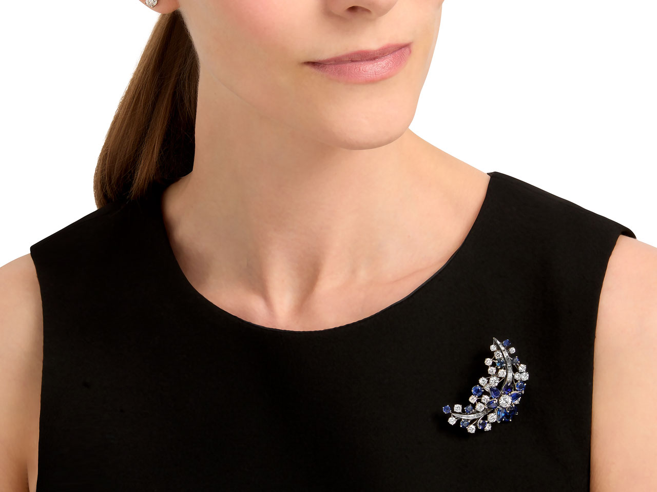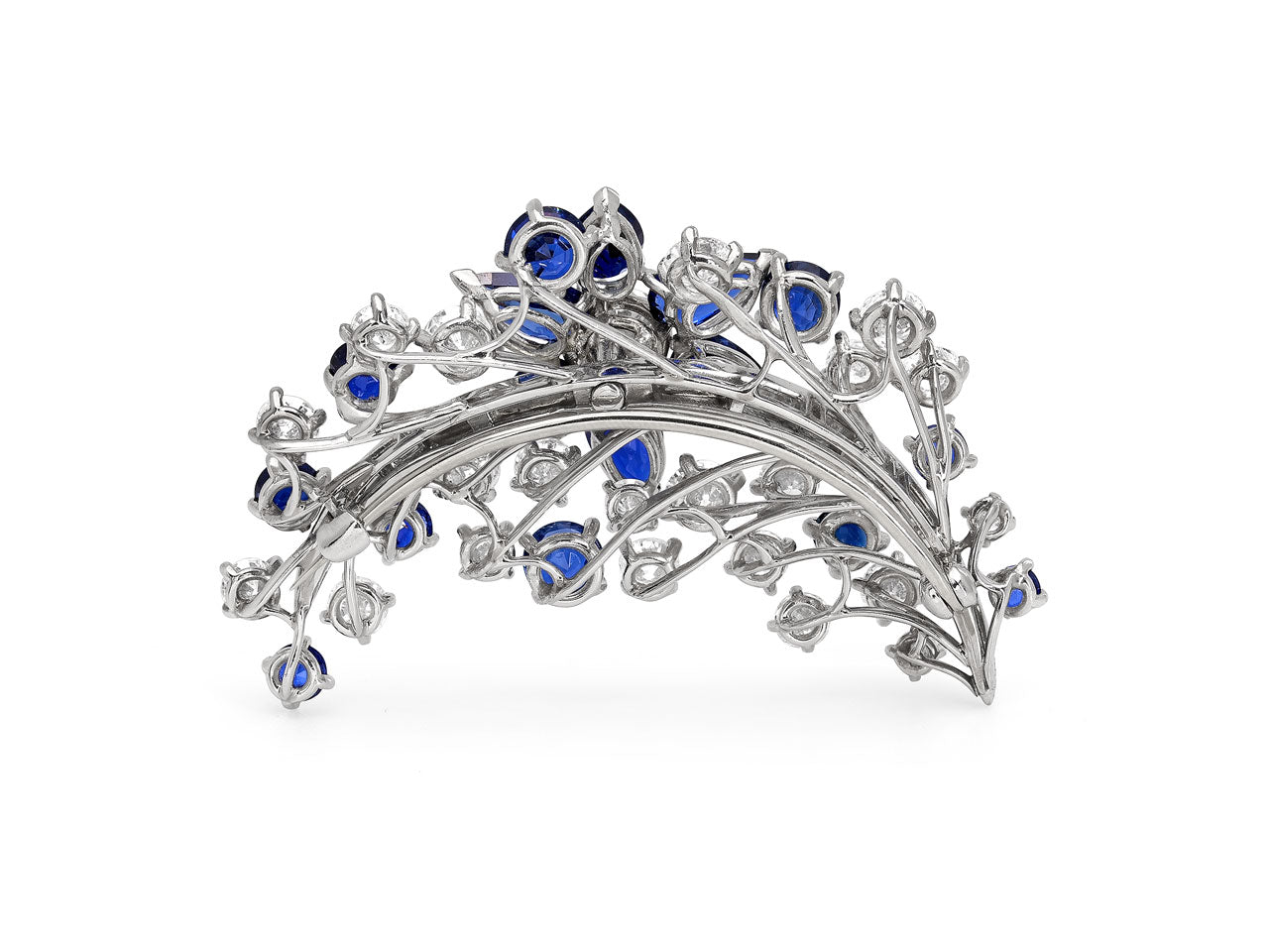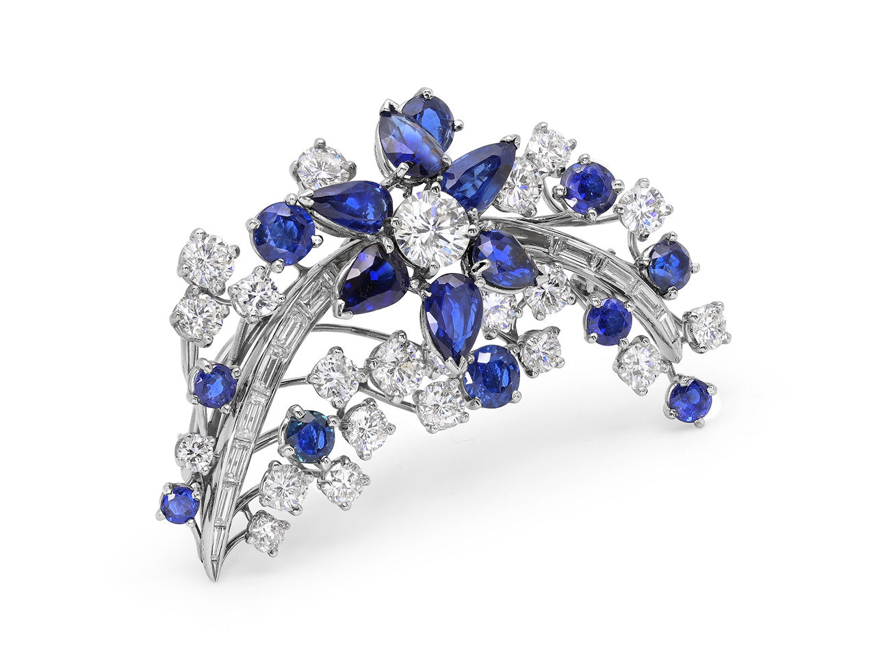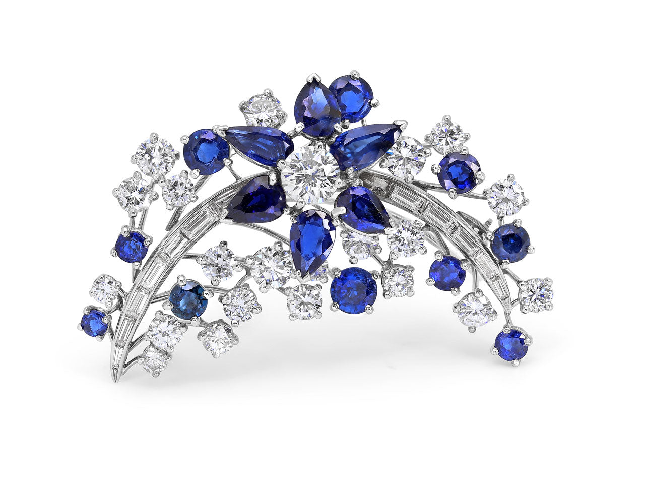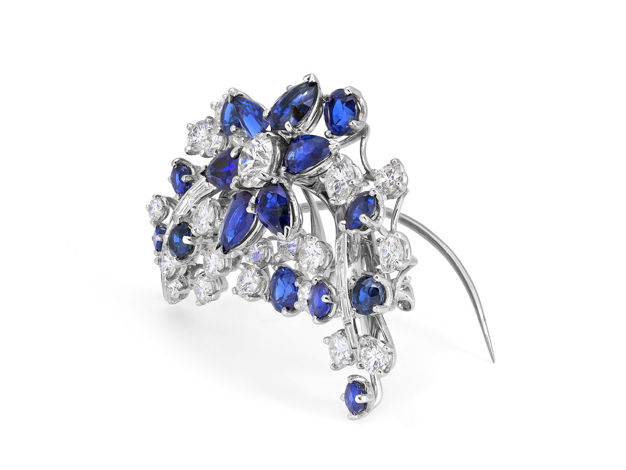 Mid-Century Sapphire and Diamond Brooch in Platinum