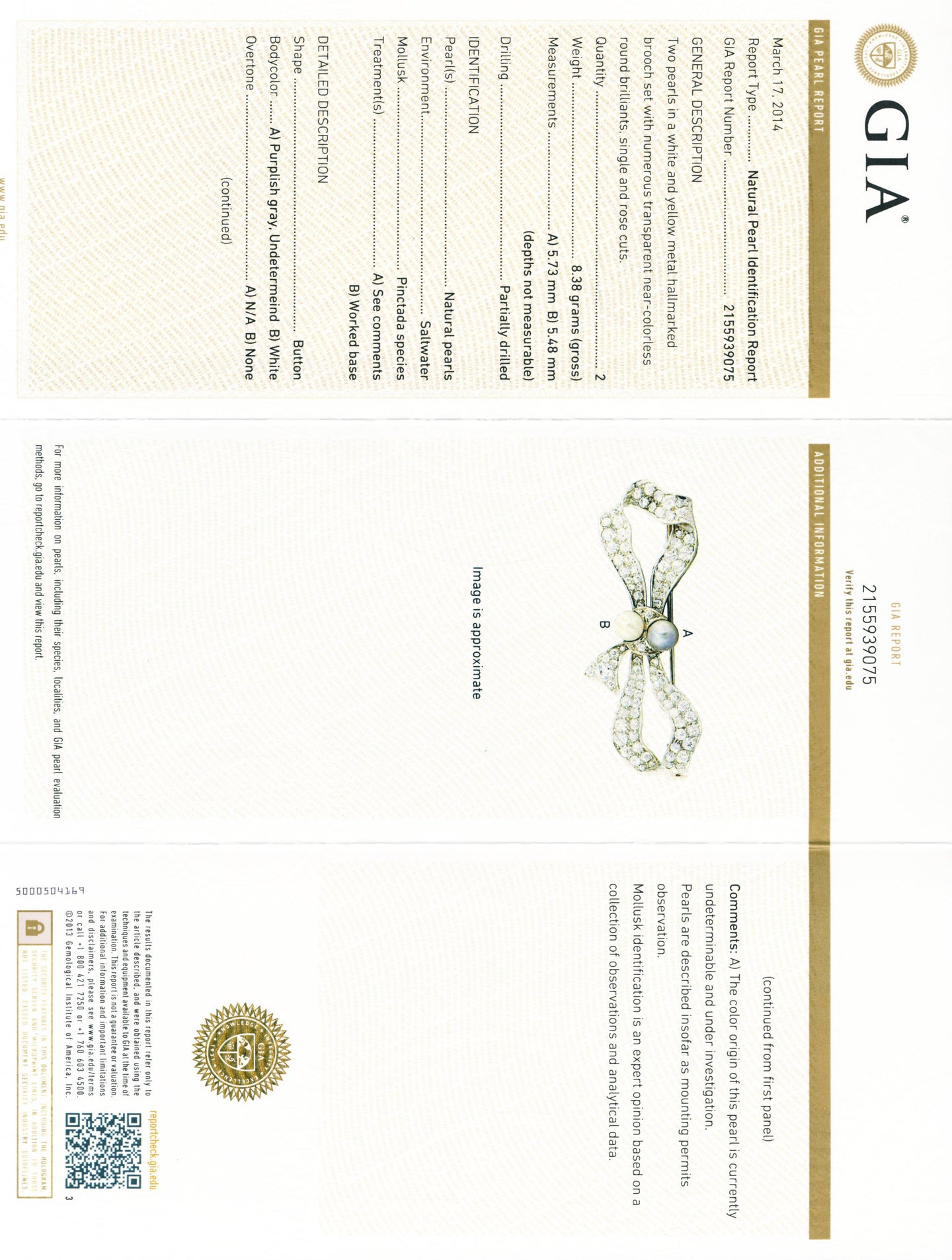 Antique Edwardian Diamond and Natural Pearl Bow Brooch in Platinum