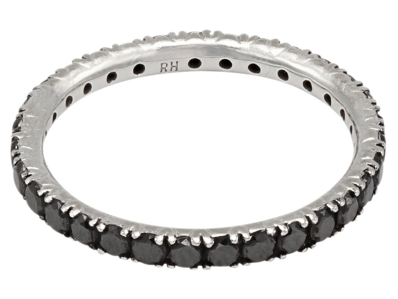 Eternity band prong-set with 35 black diamonds, in 18k white gold. Signed RH.
