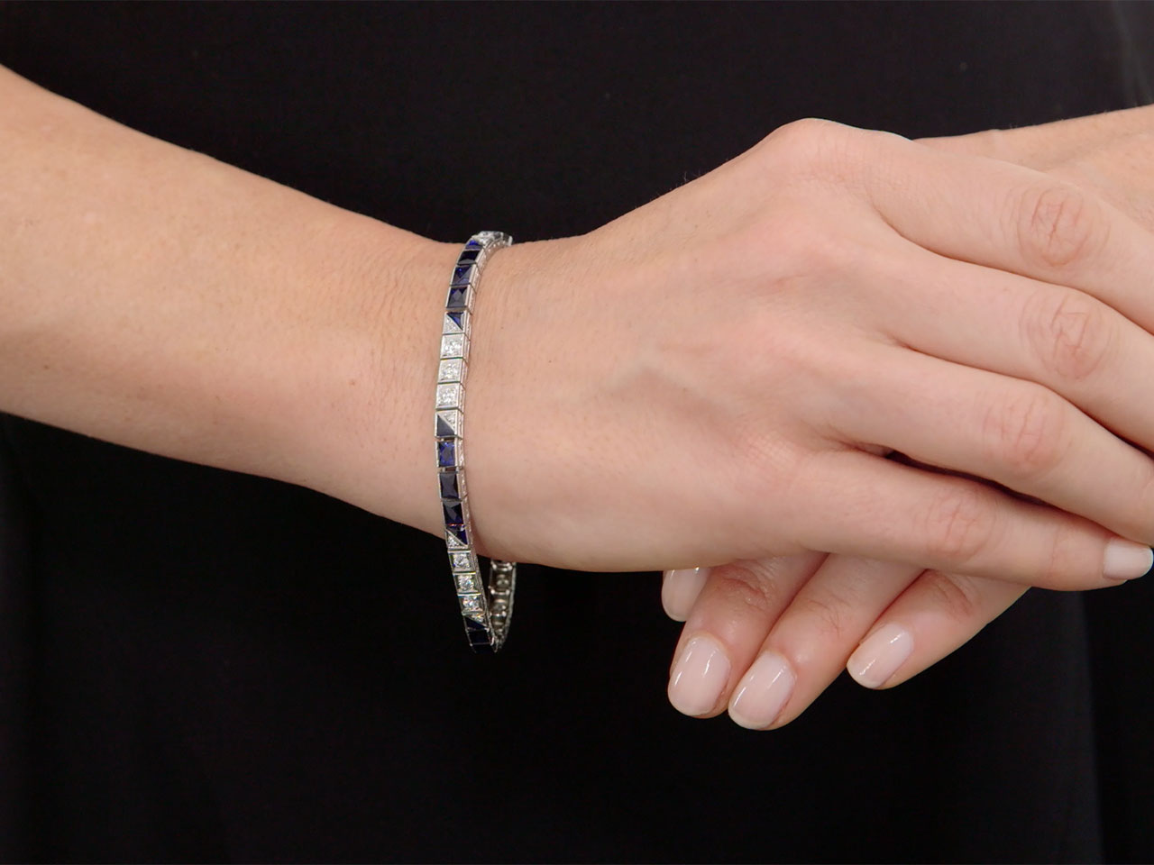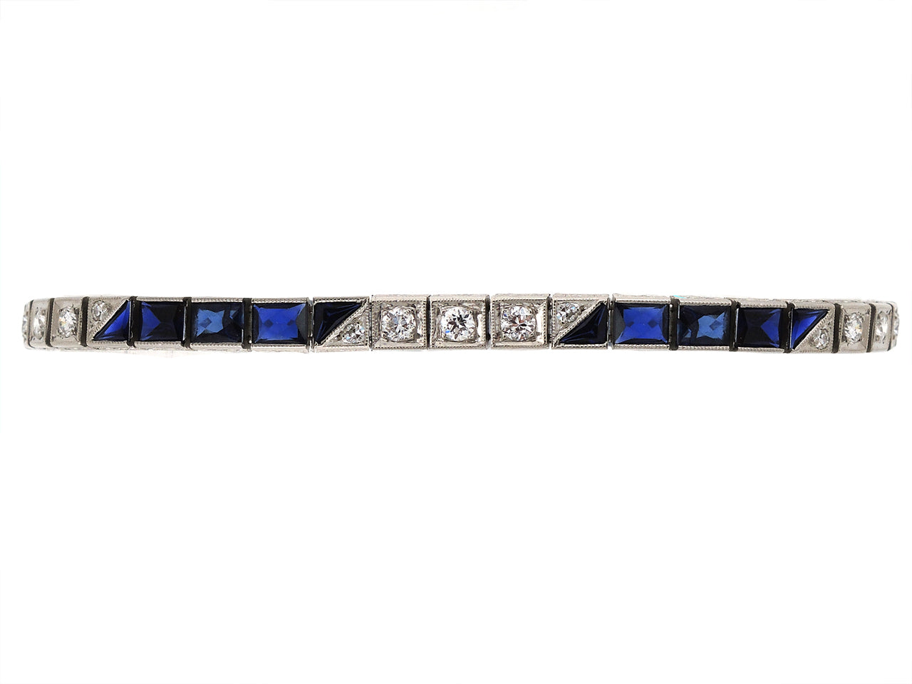 Art Deco Diamond and Synthetic Sapphire Bracelet in Platinum