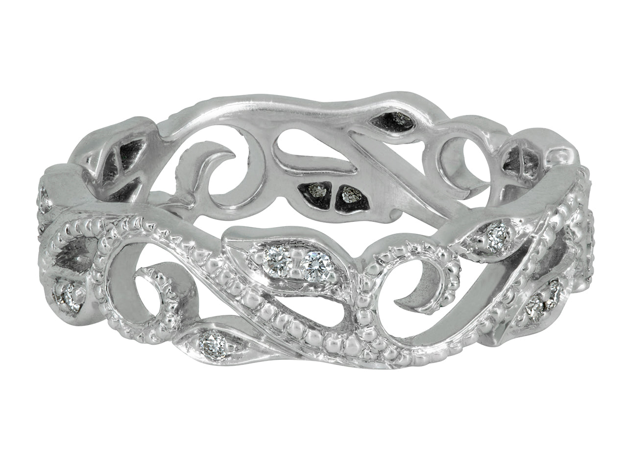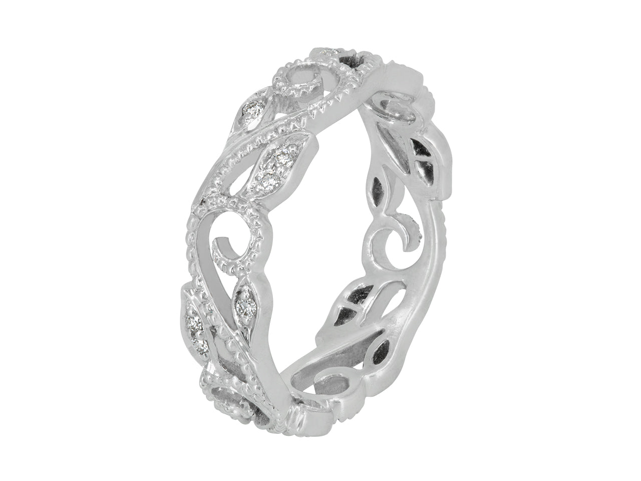 The band designed as beaded ivy motifs, with diamond-set leaves, all in 18k. Signed RFG for Rhonda Faber Green.