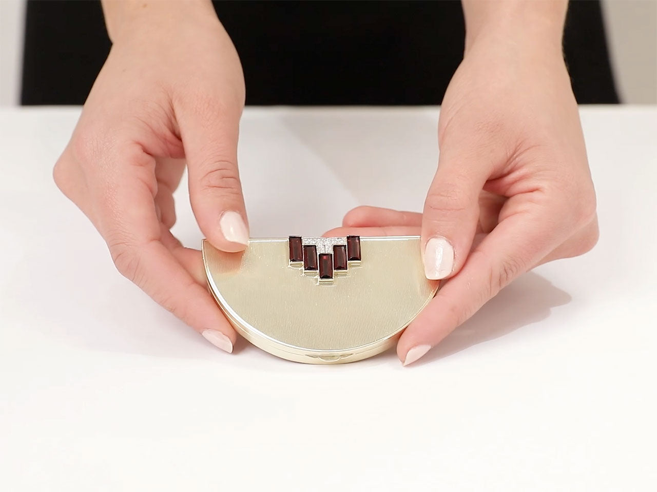 Retro Diamond and Garnet Half Moon Box in 14K Gold