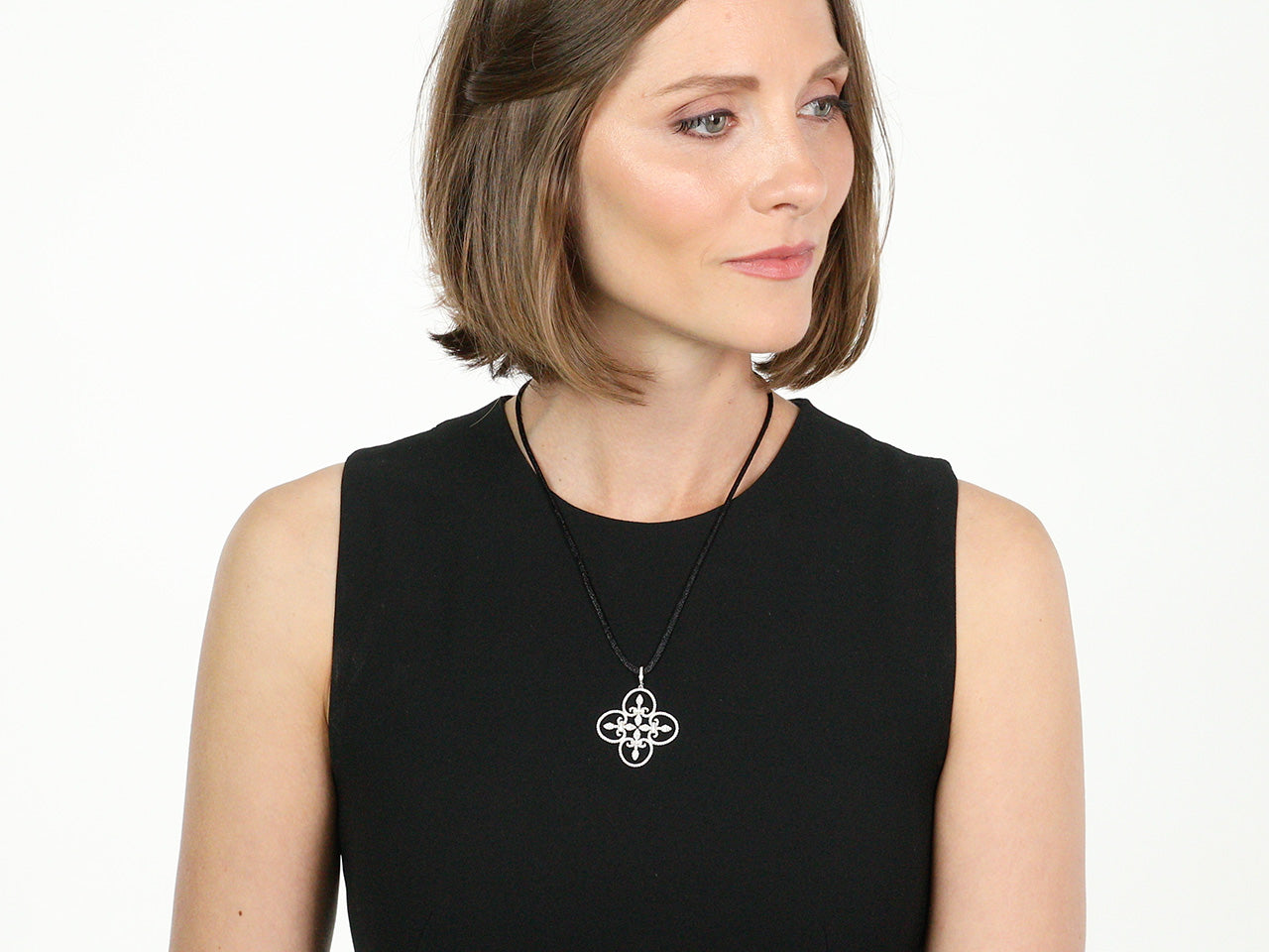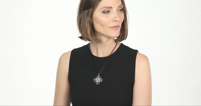 Rhonda Faber Green Diamond Filigree Cross in 18K White Gold