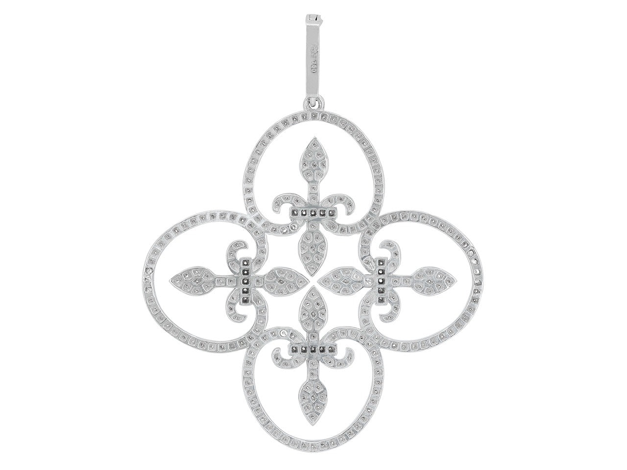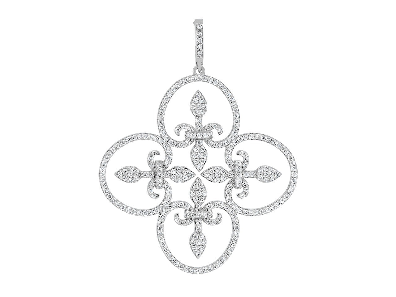 Of open quatrefoil design, accented by four fleur-de-lis motifs, to a hinged diamond set bail, all in 18k. Signed RFG for Rhonda Faber Green.