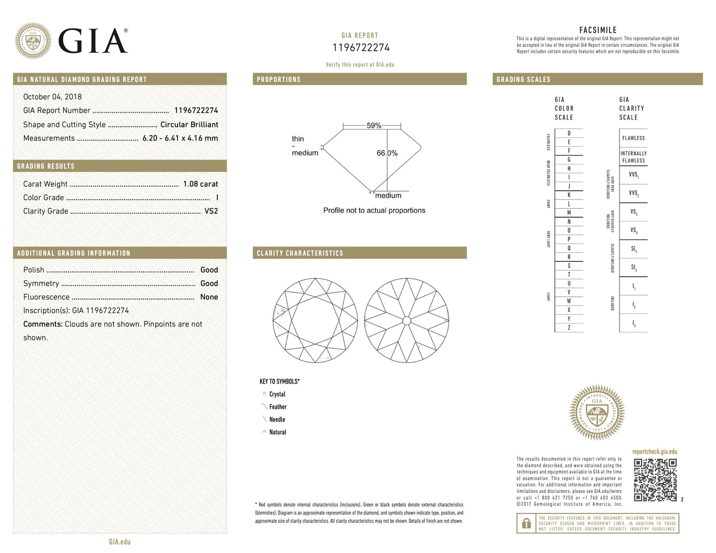 - Gem Stone: Center Diamond 1.08 carats I/VS-2 GIA Report 1196722274