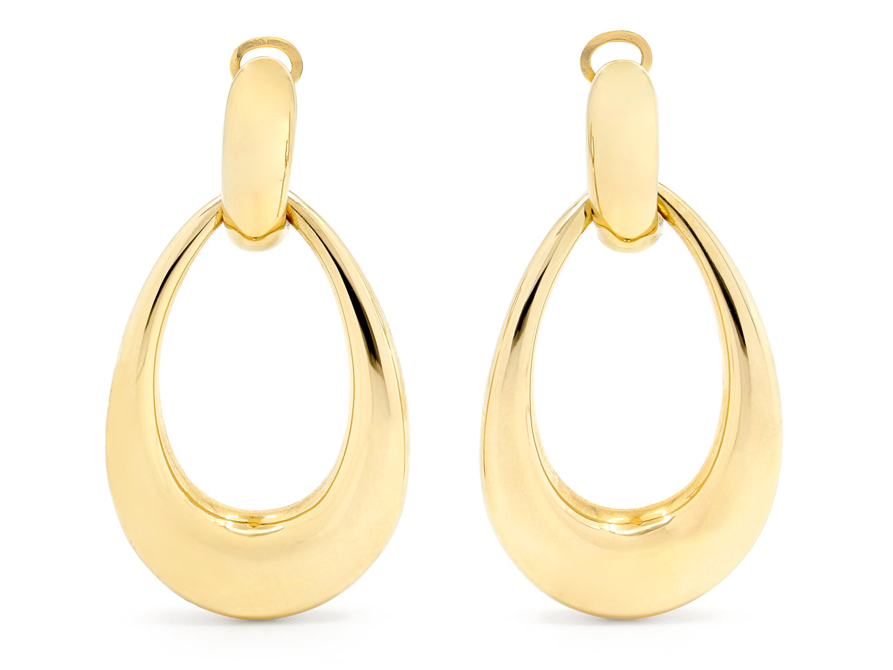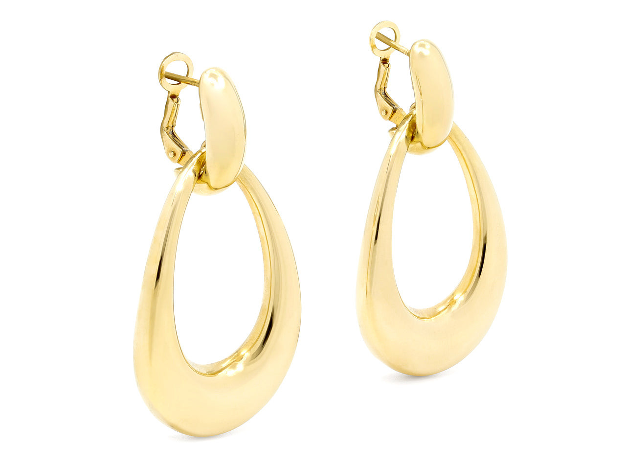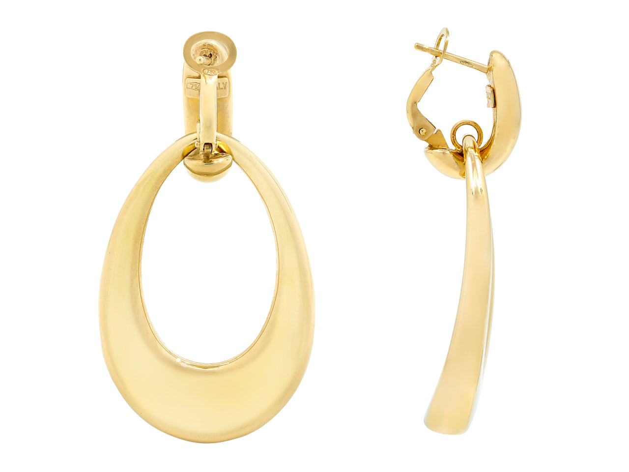 Of door knocker design, in high polished 18K yellow gold, with posts. Made by hand in Italy, for Beladora.