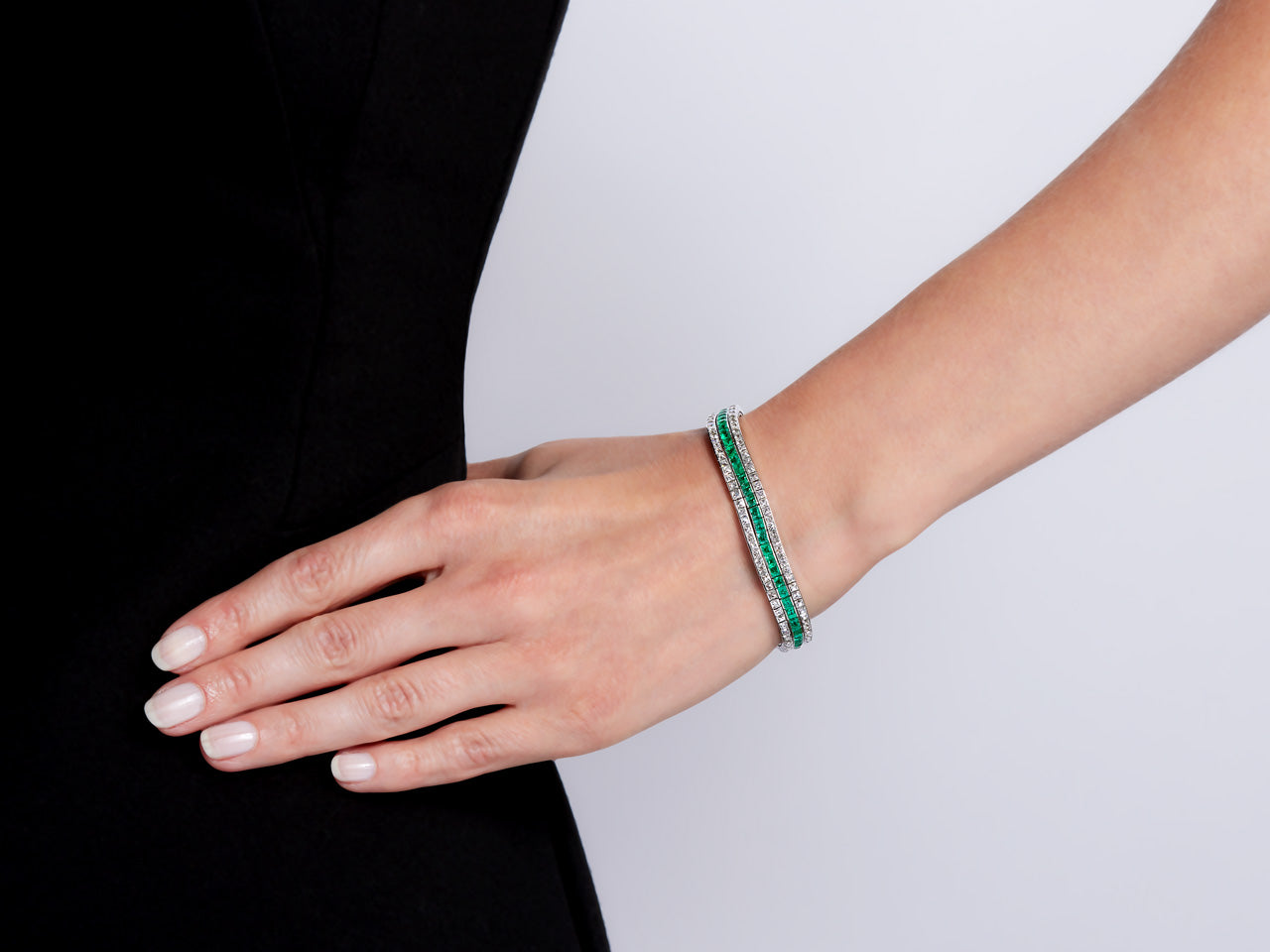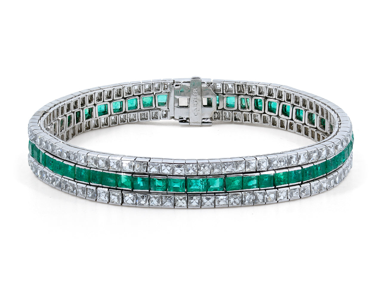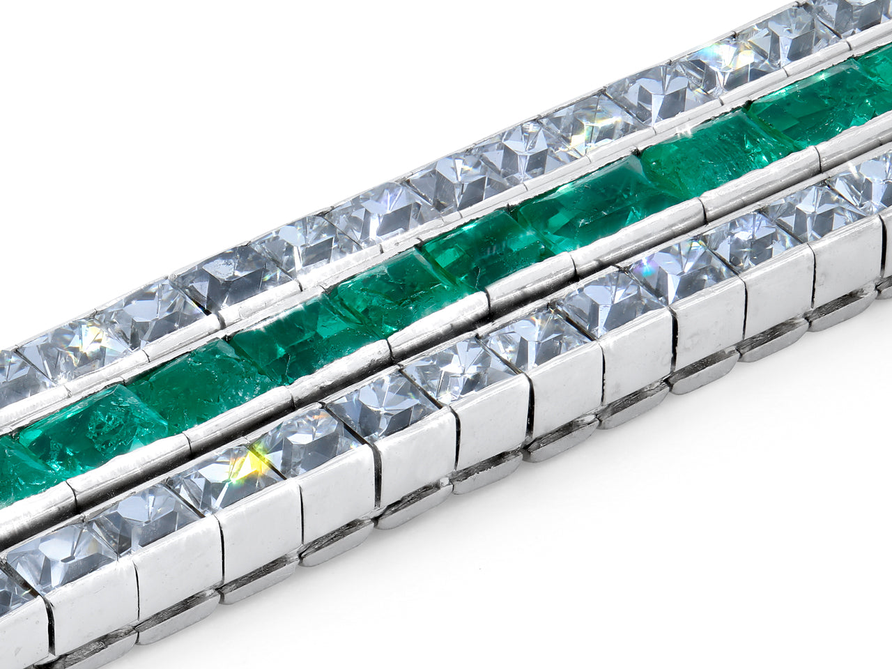 Art Deco Three Row Emerald and French-cut Diamond Bracelet