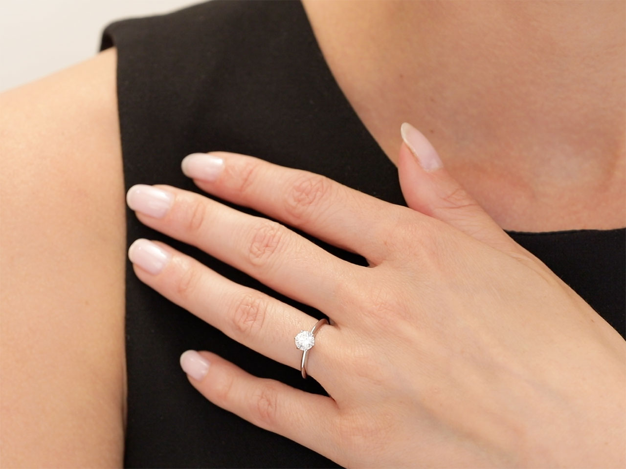 Single stone 0.75 carat diamond ring, set in a six prong platinum mounting.