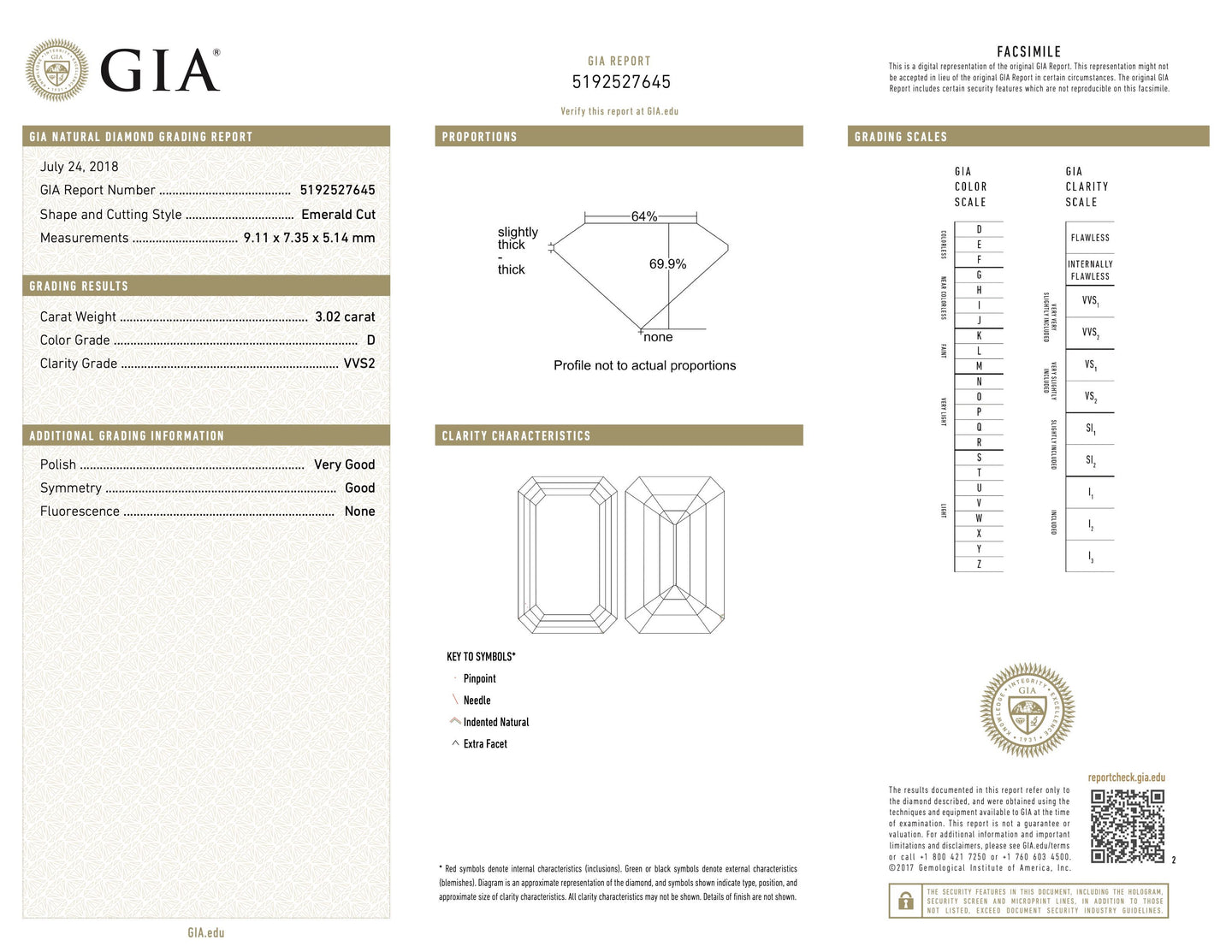 - Gem Stone: Diamond 3.02 carats Asscher cut D/VVS-2 GIA Report Number 5192527645