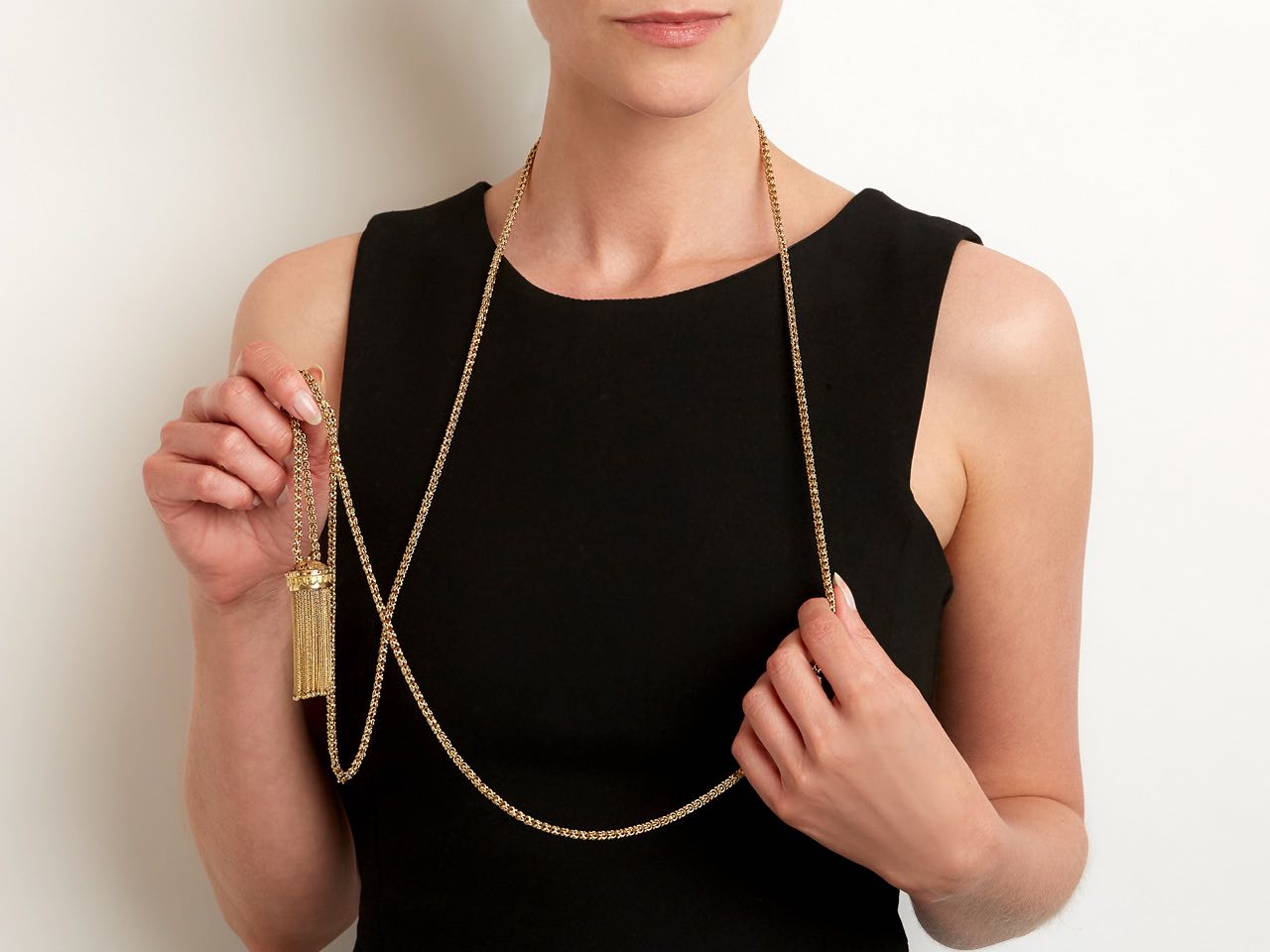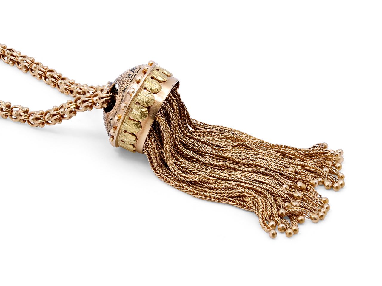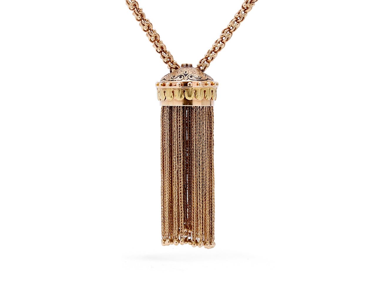 Antique Victorian Tassel Necklace, 60 Inches, in 15K Gold