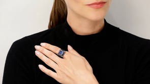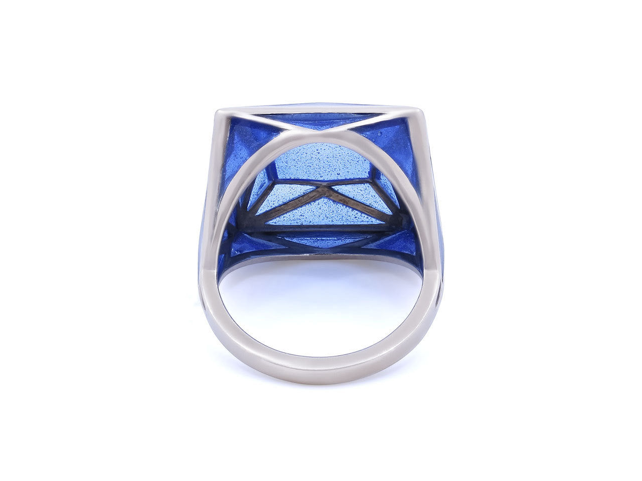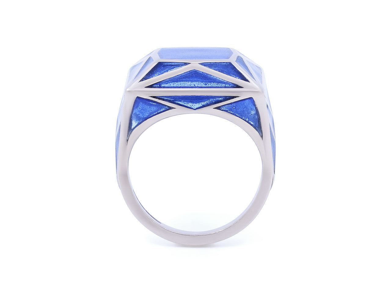 Solange Azagury-Partridge 'Real Fake' Square Blue Enamel Ring in 18K White Gold
