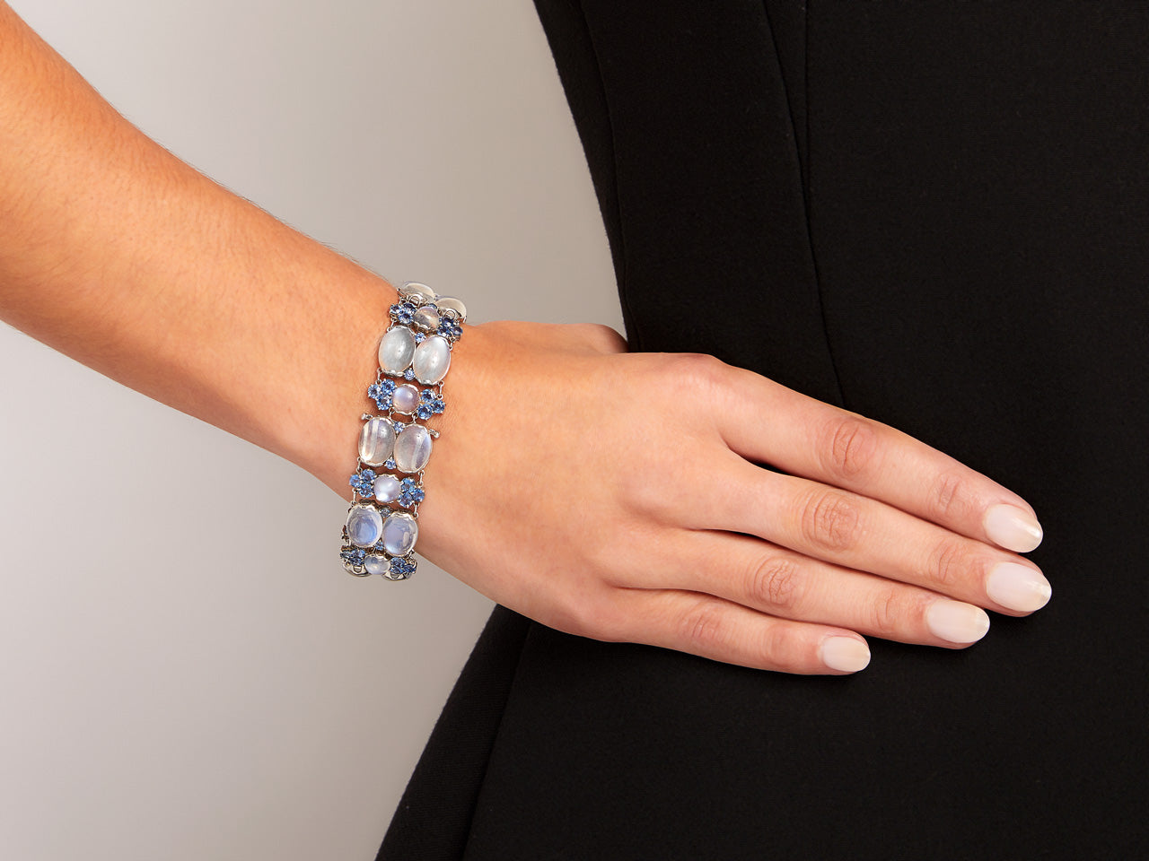 Antique Tiffany & Co. Moonstone and Montana Sapphire Bracelet in Platinum, by Louis Comfort Tiffany
