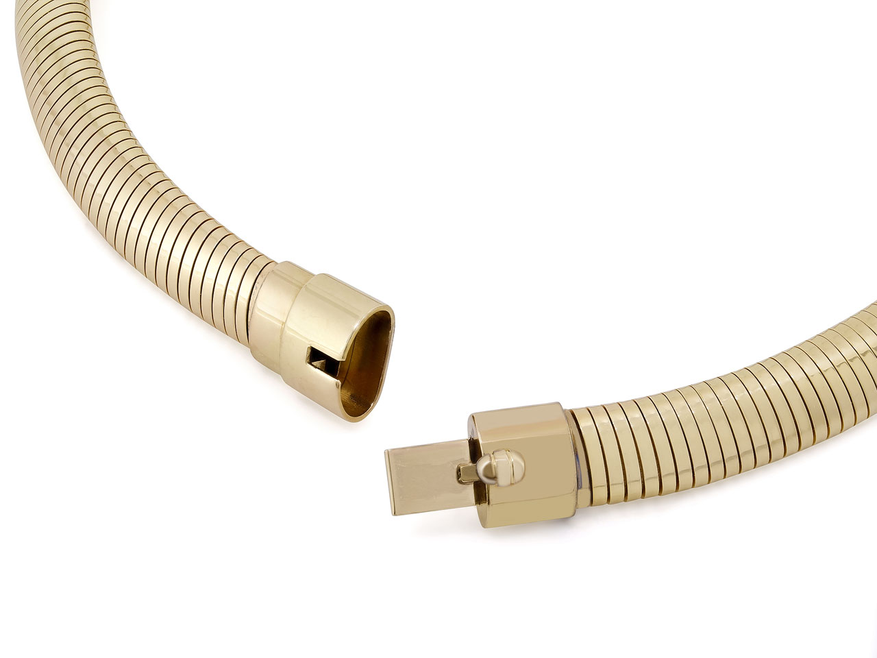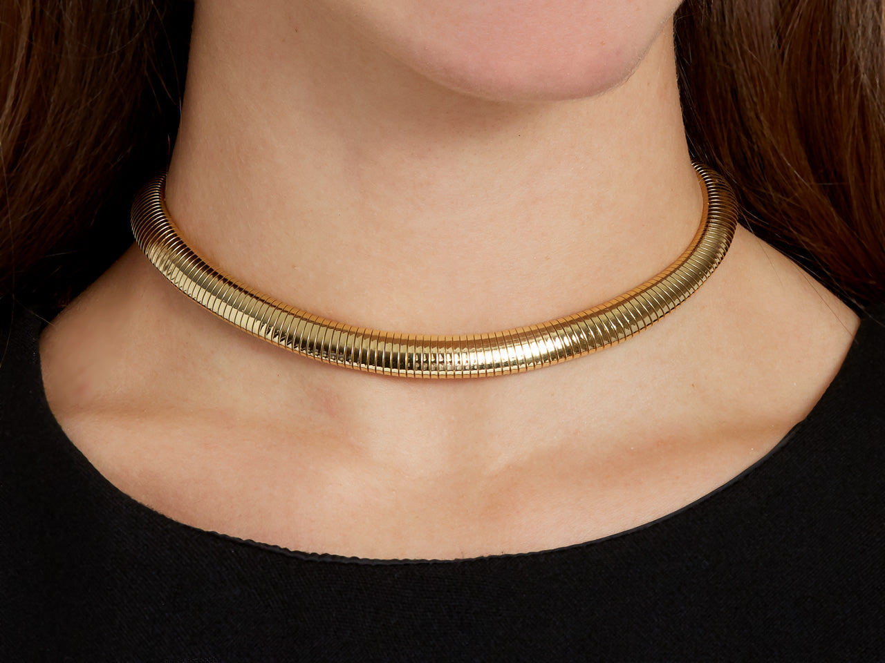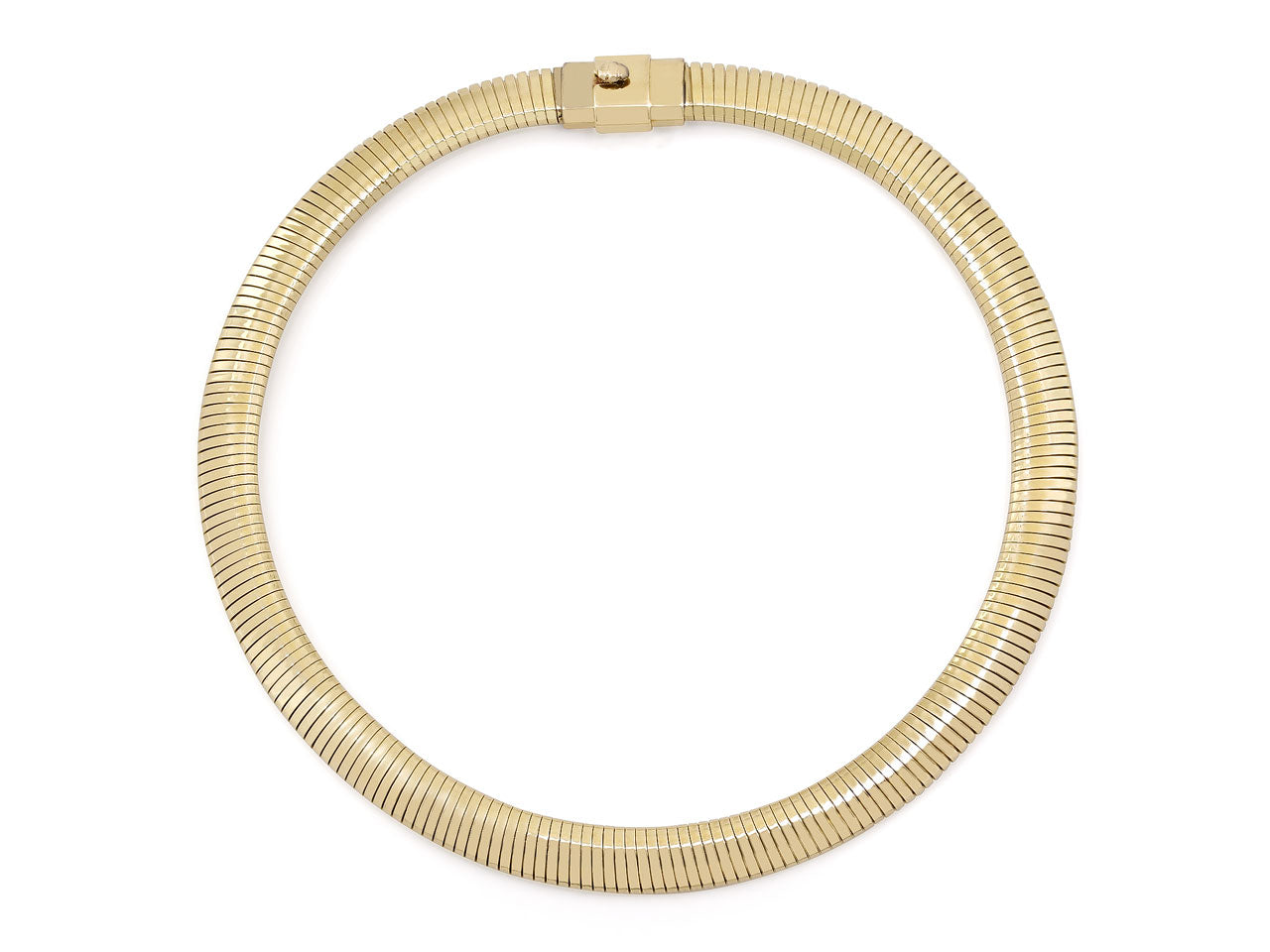 The tubogas choker in high polish 14k gold, signed Forstner.