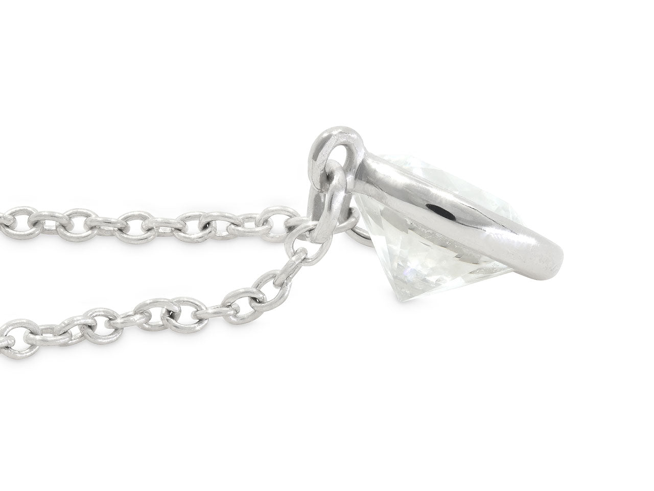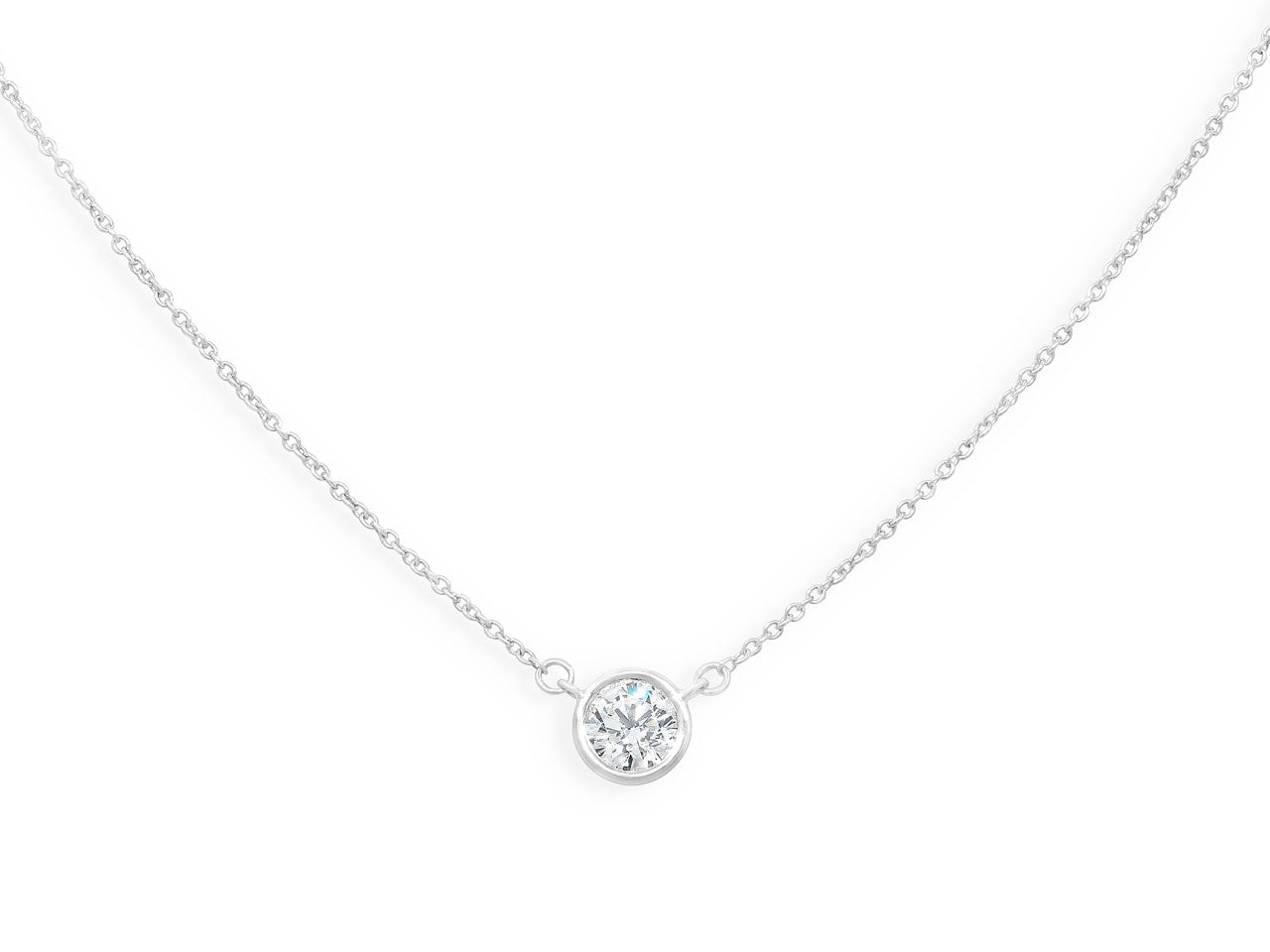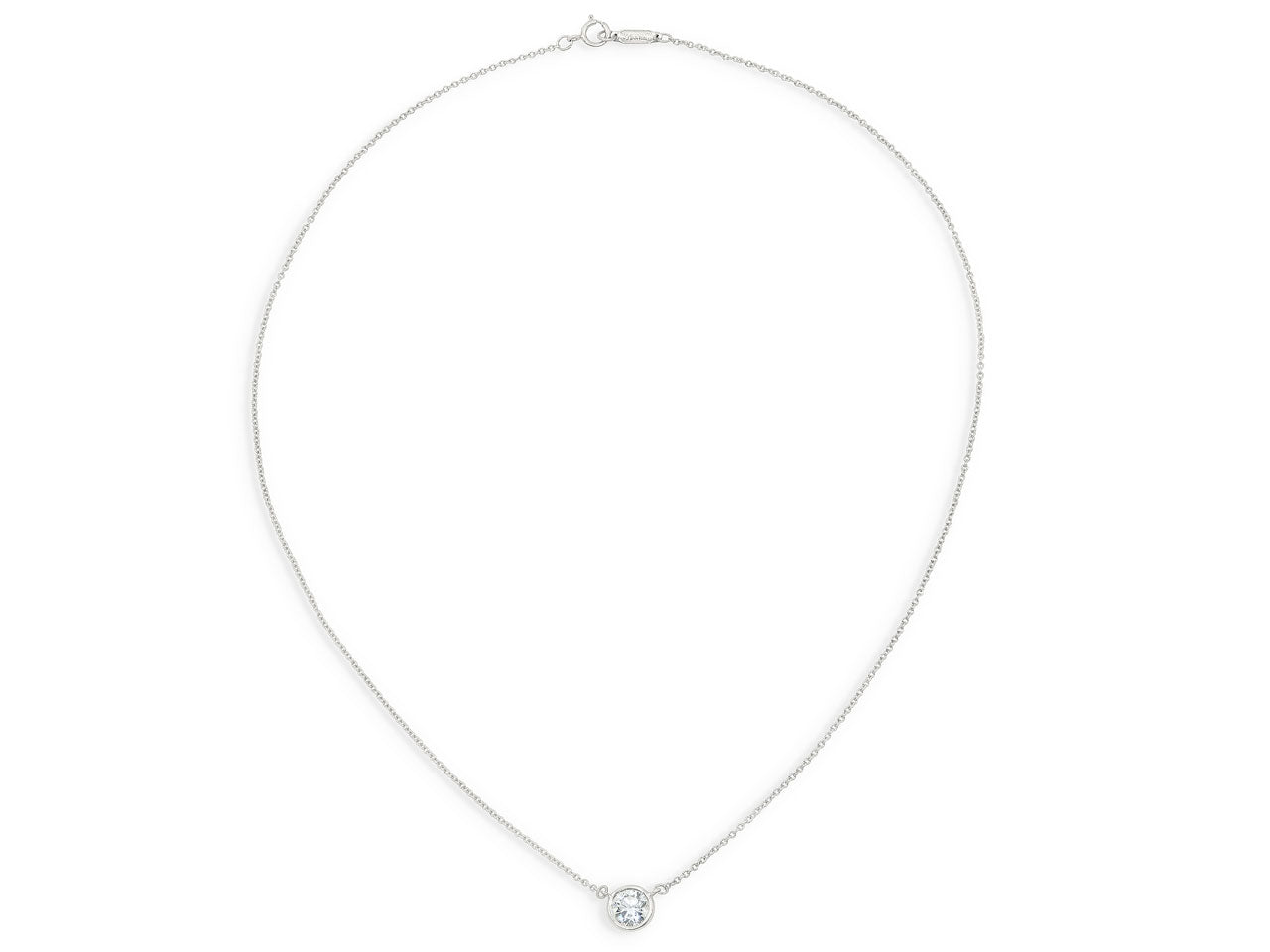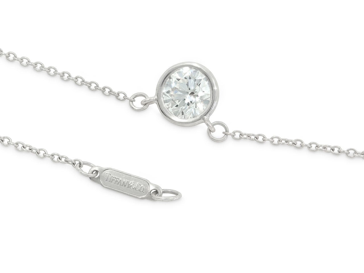 Featuring a 0.92 carat bezel set diamond, in platinum, to a platinum fine link chain. Signed Tiffany & Co.
