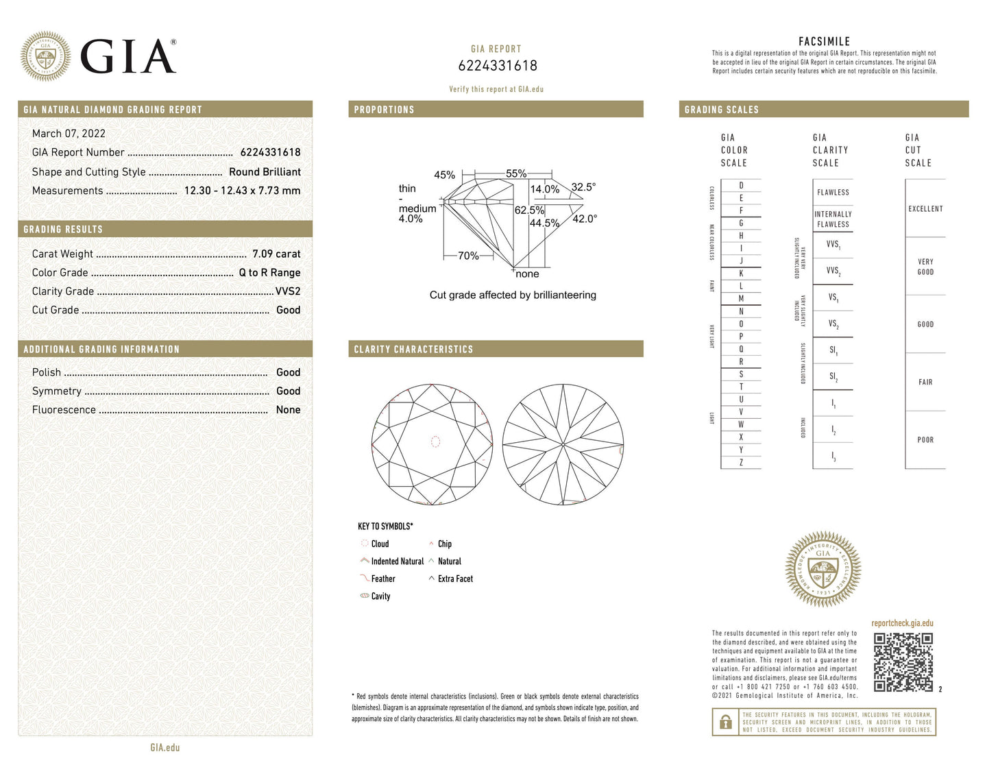 - Gem Stone: Diamond 7.09 carats Q-R/VVS-2 GIA #6224331618