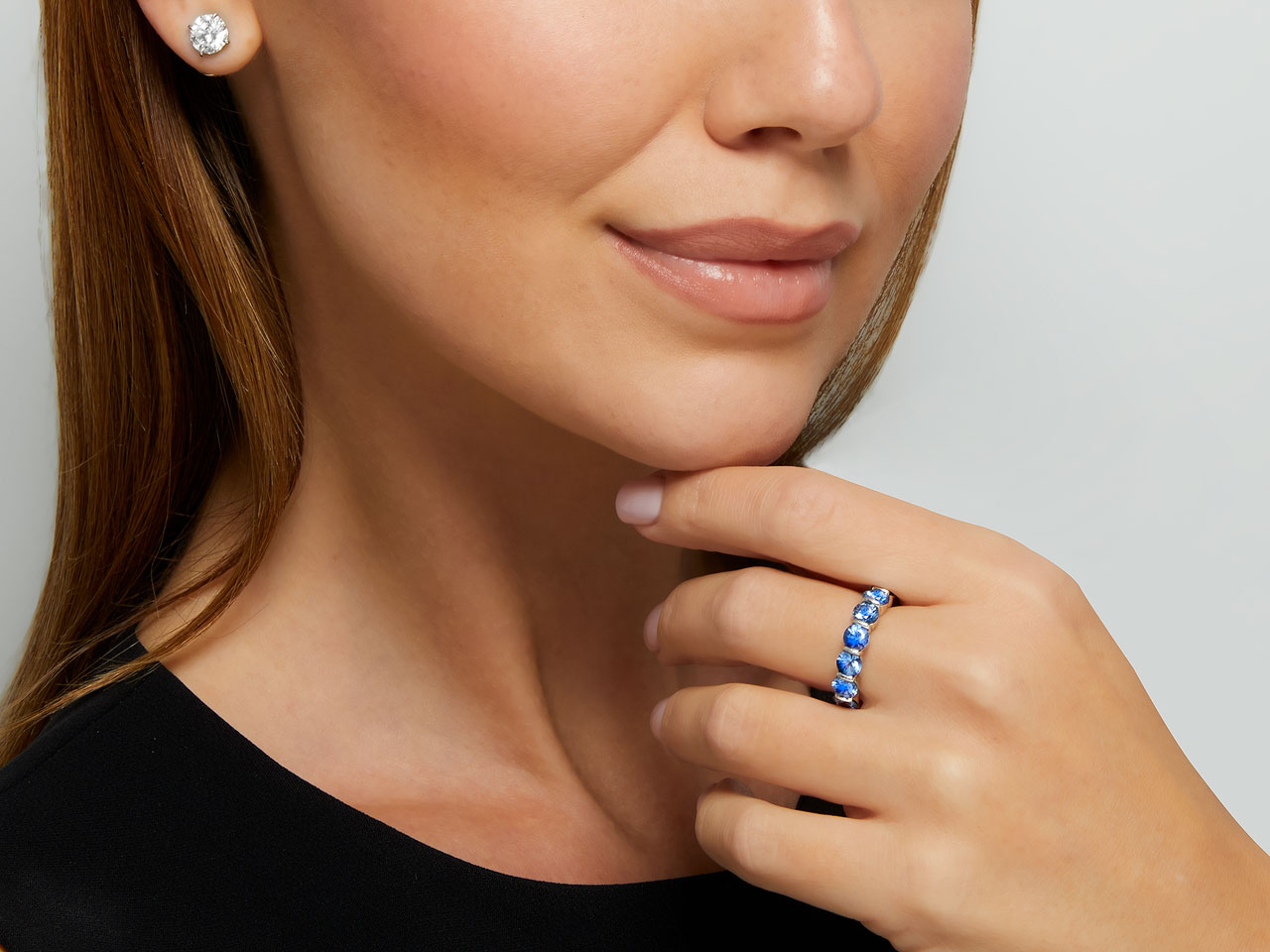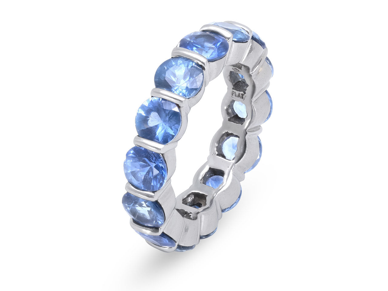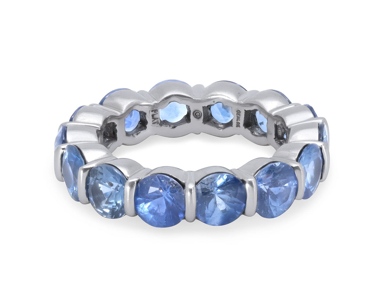 Band featuring 14 round sapphires in Gemlok setting. Made by Gemlok (formerly known as Gemveto).