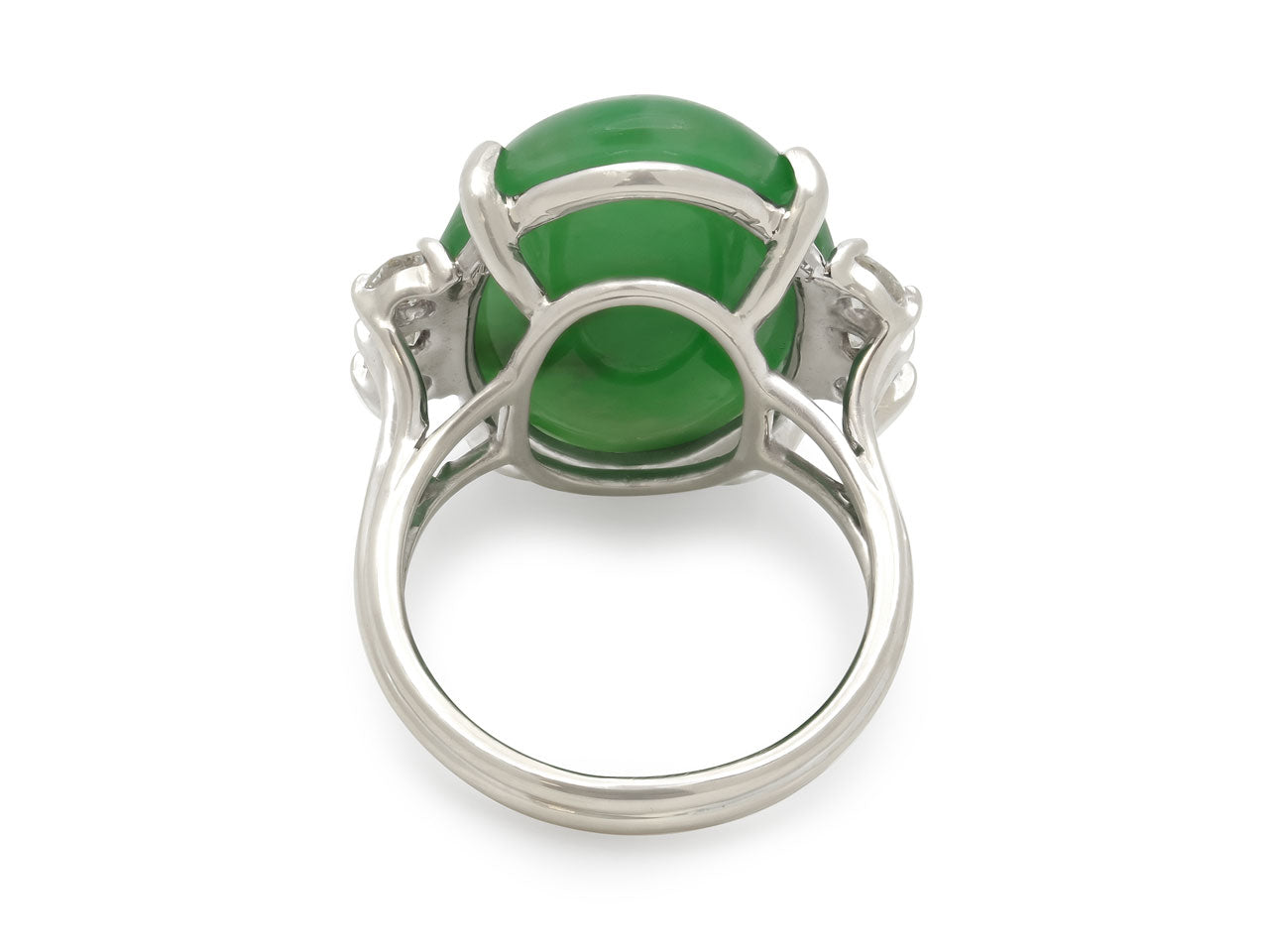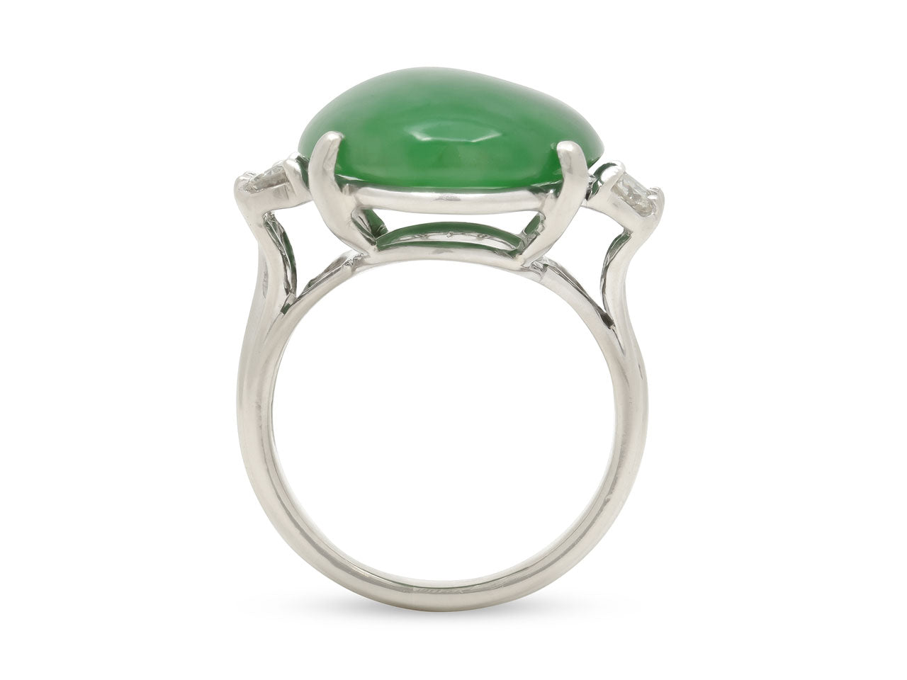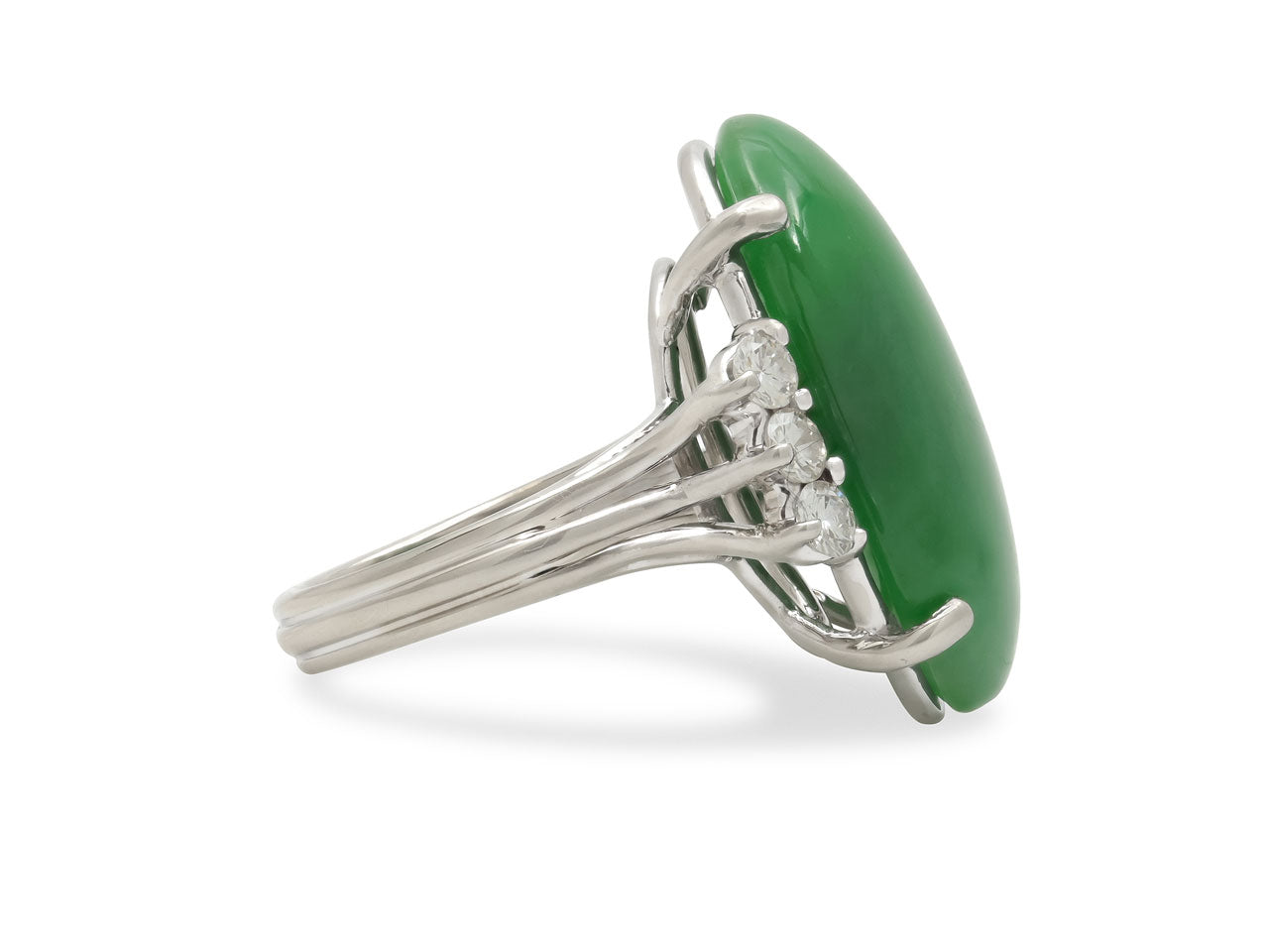 Mid-Century Green Jade and Diamond Ring in Platinum