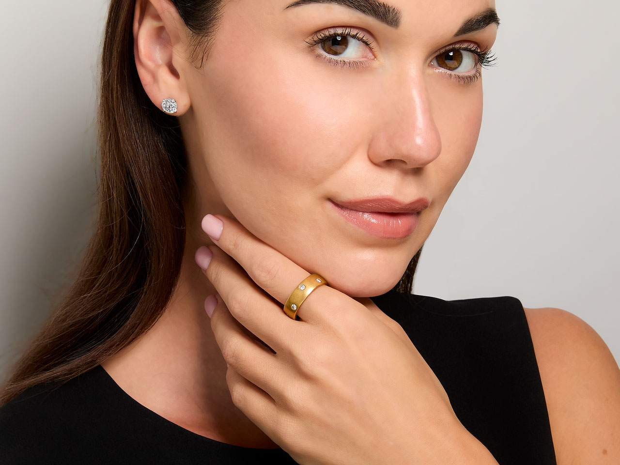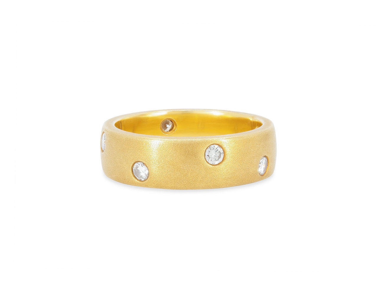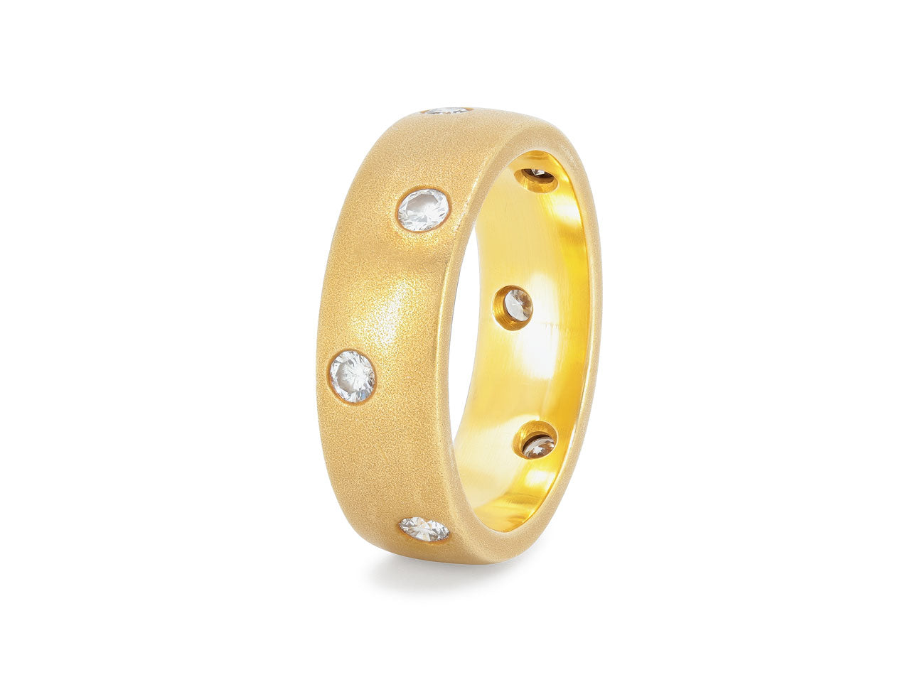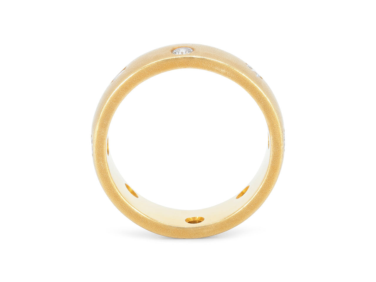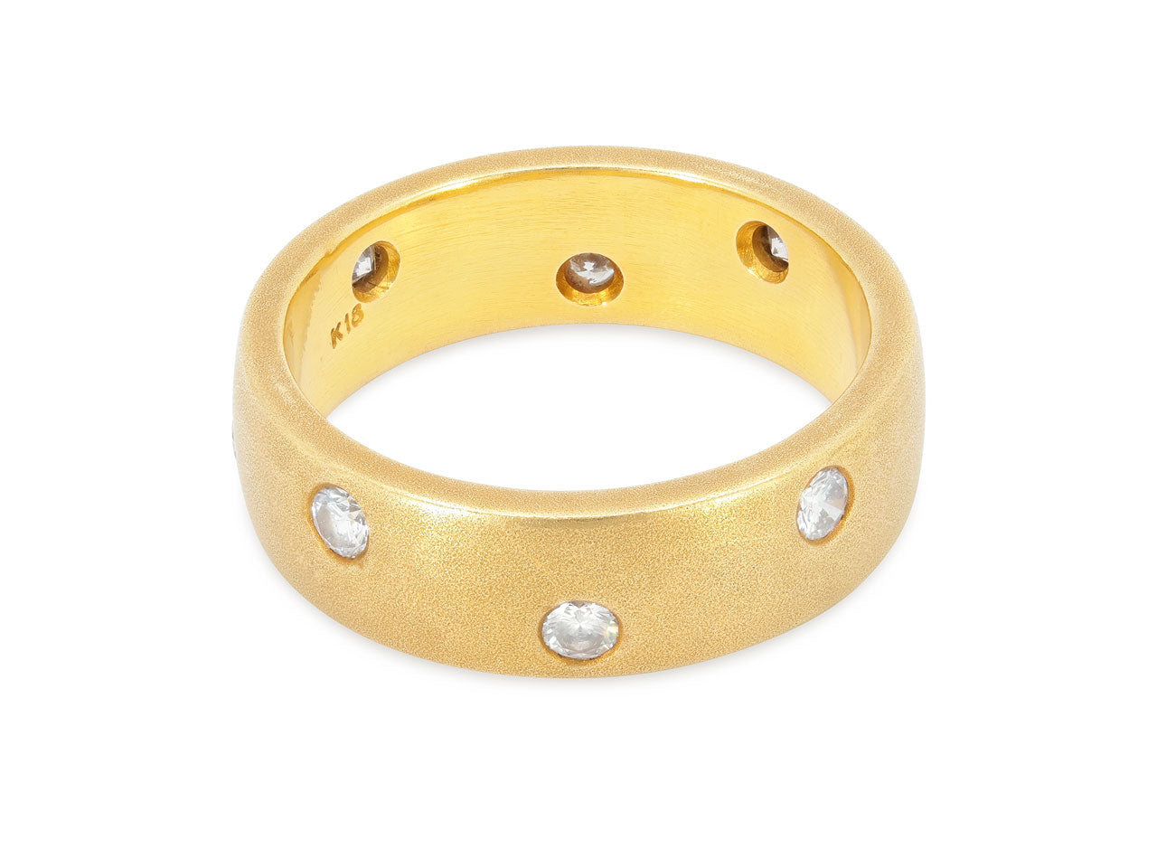 The band with evenly spaced, flush-set diamonds set on alternating edges, in brushed 18k gold.