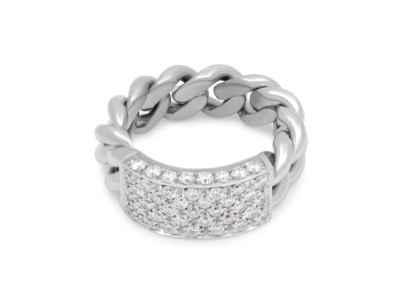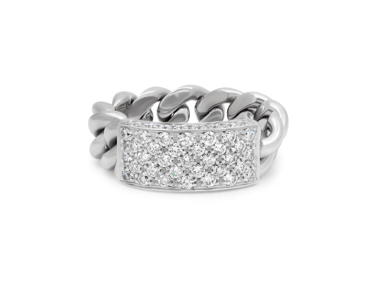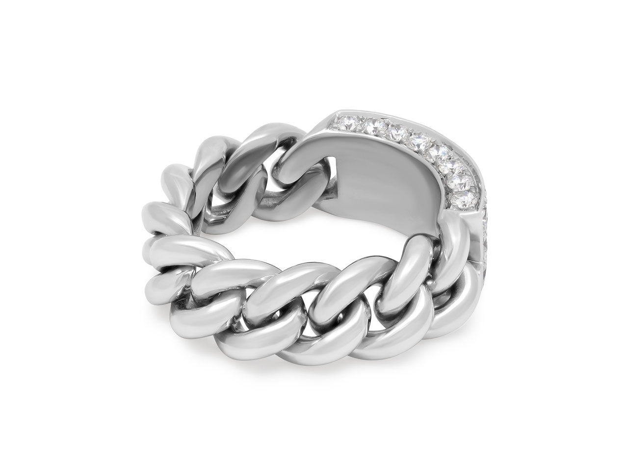 Chain Link Ring with Diamond Plaque, in 18K White Gold