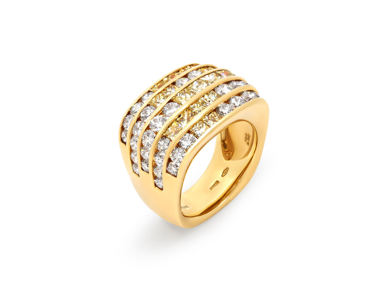 Damiani Yellow and White Diamond 'Stripe' Ring in 18K Gold