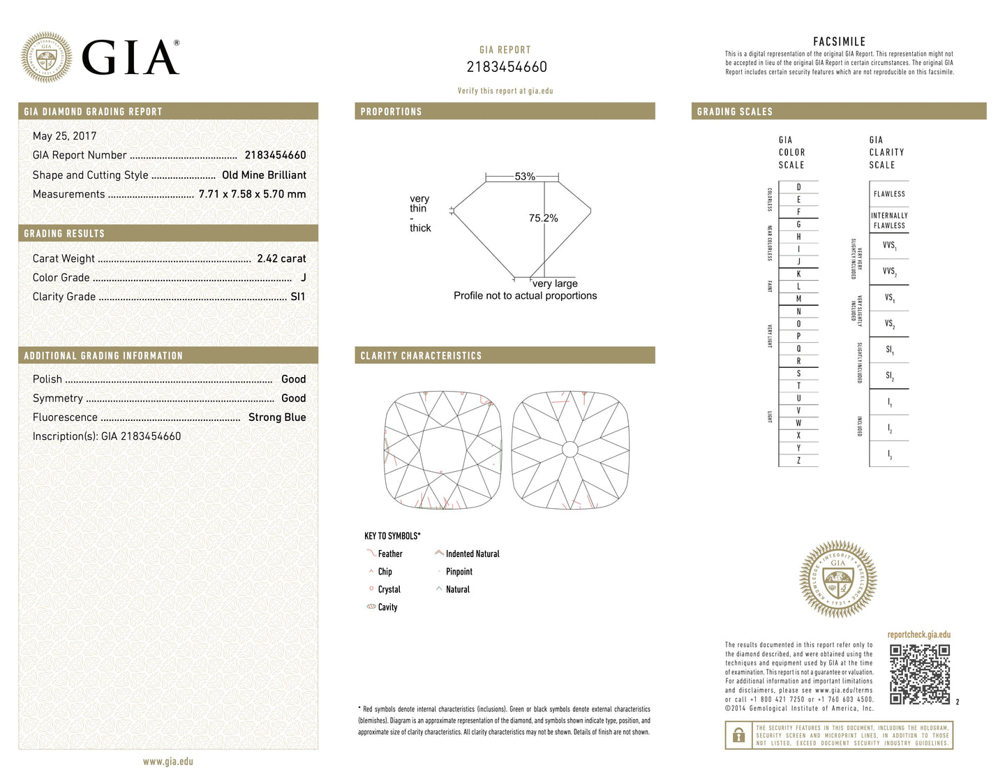 - Gem Stone: Diamond 2.42 carats Old Mine Brilliant cut J/SI1 GIA 2183454660