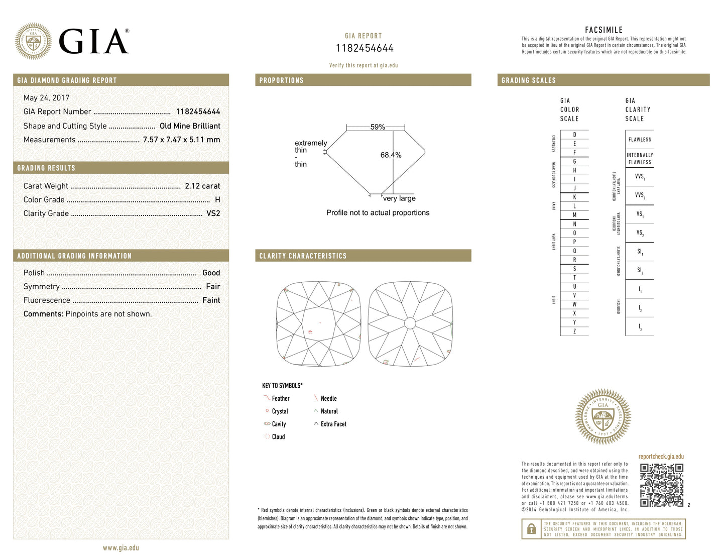 - Gem Stone: Diamond 2.12 carats Old Mine Brilliant cut H/VS2 GIA 1182454644