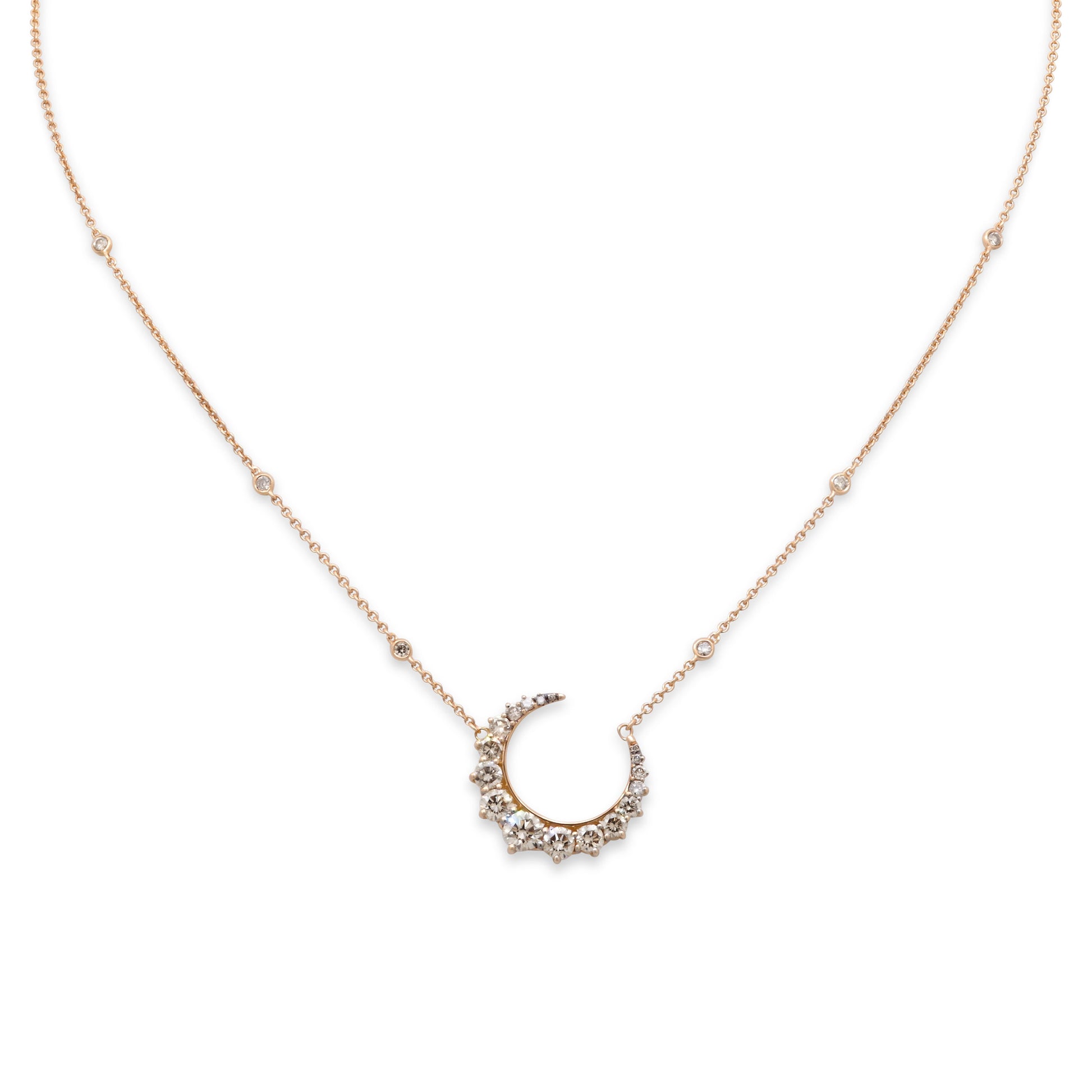 Crivelli Diamond Crescent Necklace in 18K Rose Gold