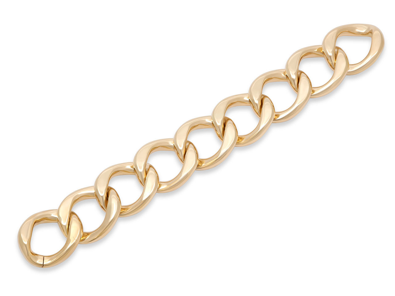 Composed of 9 high polish curb links, in 18k yellow gold.