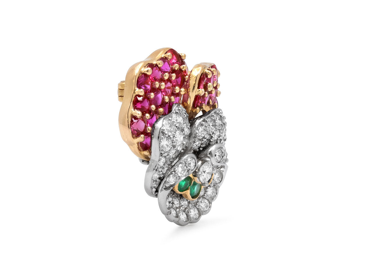 Tiffany & Co. Mid-Century Pansy Brooch Ruby, with Ruby, Diamond and Emeralds, in 18K Gold and Platinum