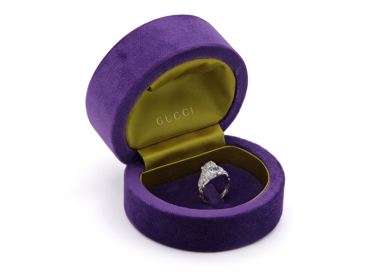 Gucci Diamond and Aquamarine 'Lion Head' Ring in 18K White Gold