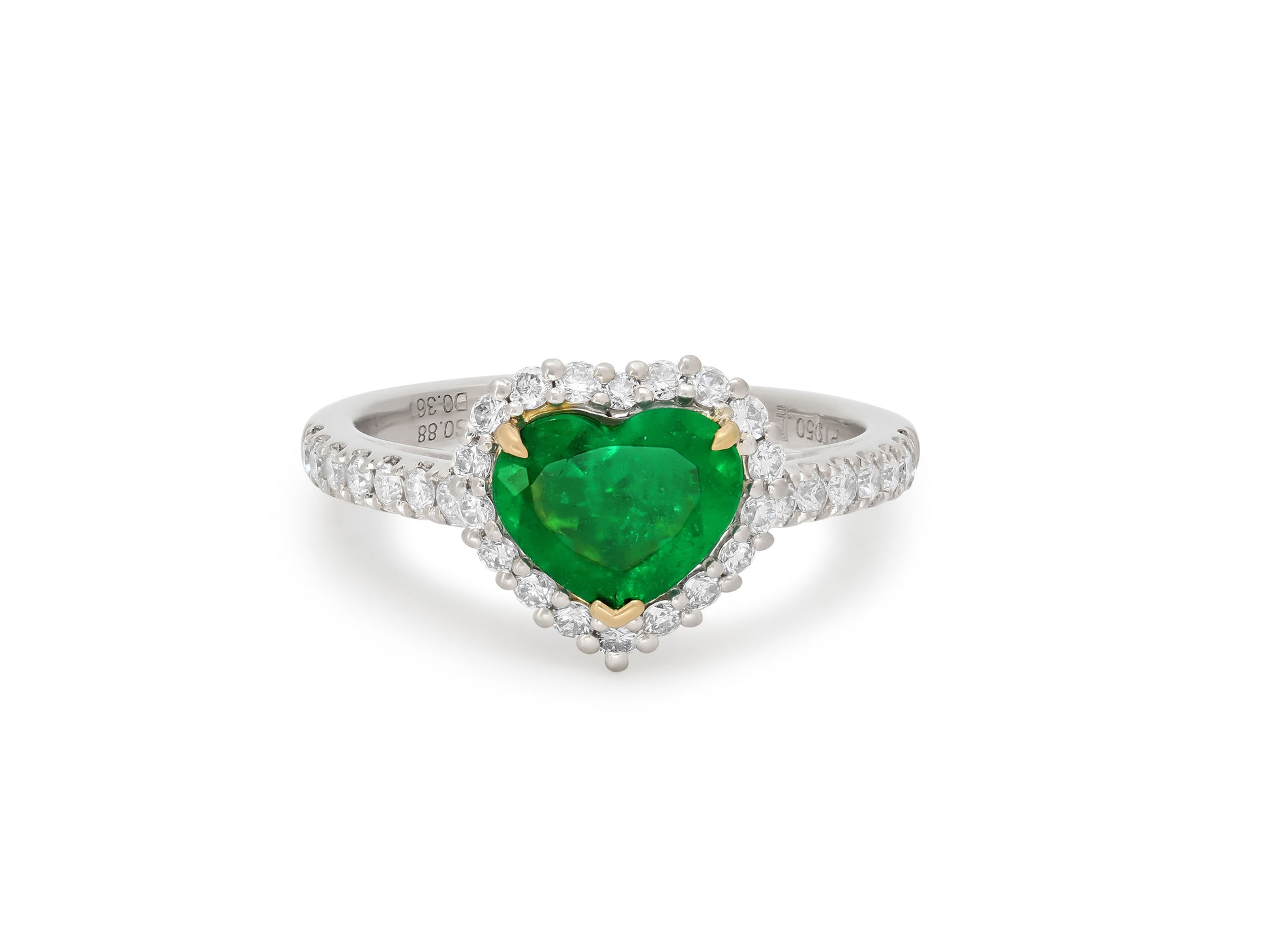 Emerald Heart and Diamond Ring in Platinum and 18K Gold
