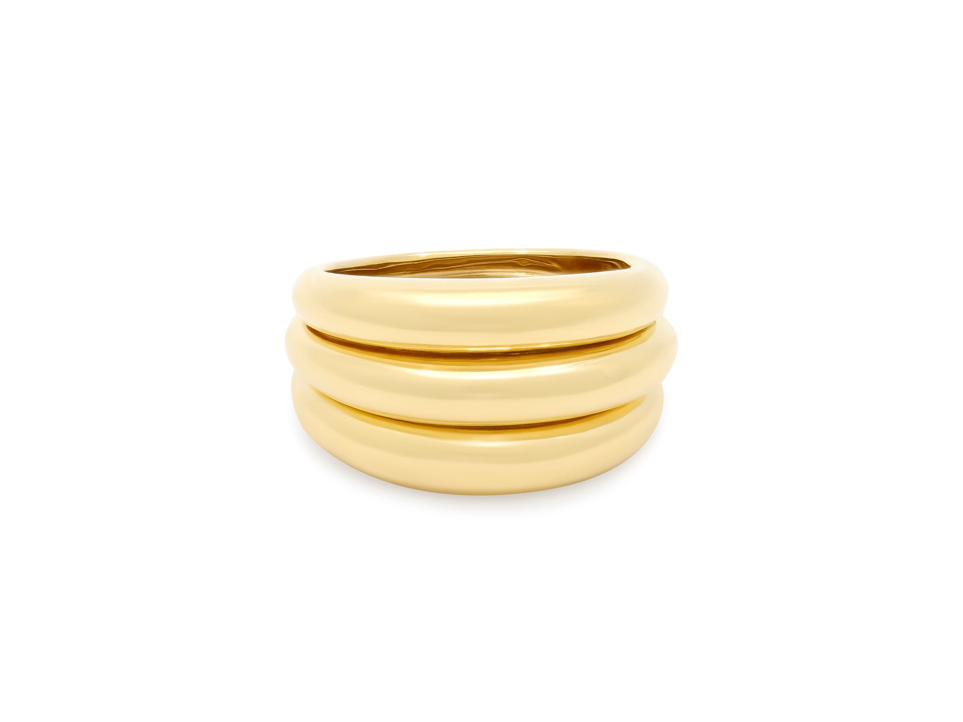 The graduated, fluted band in high polish 18k yellow gold. Made by hand in Italy, for Beladora.
