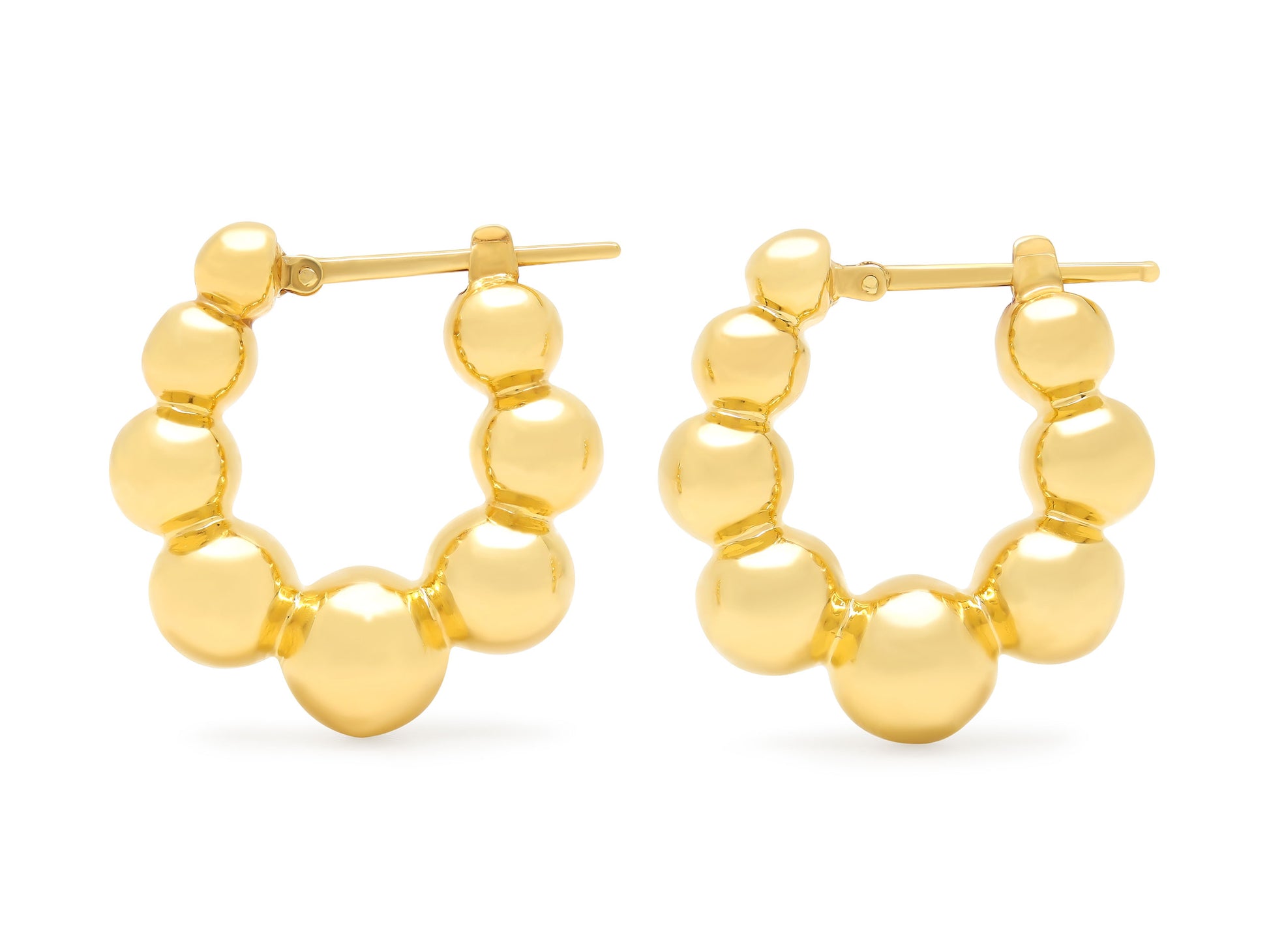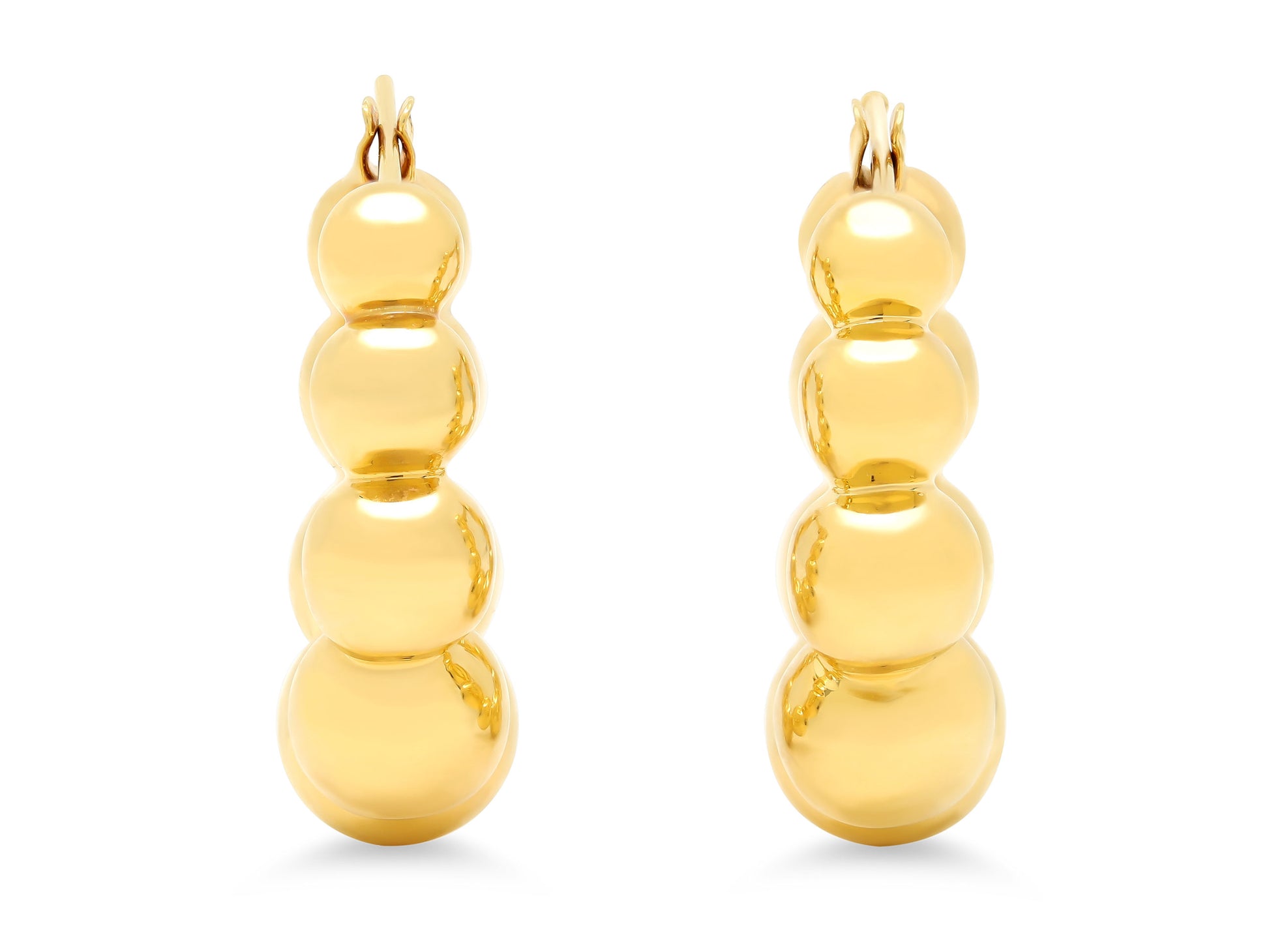 Each hoop earring composed of graduating, high polish 18k yellow gold balls. Made by hand in Italy, for Beladora.