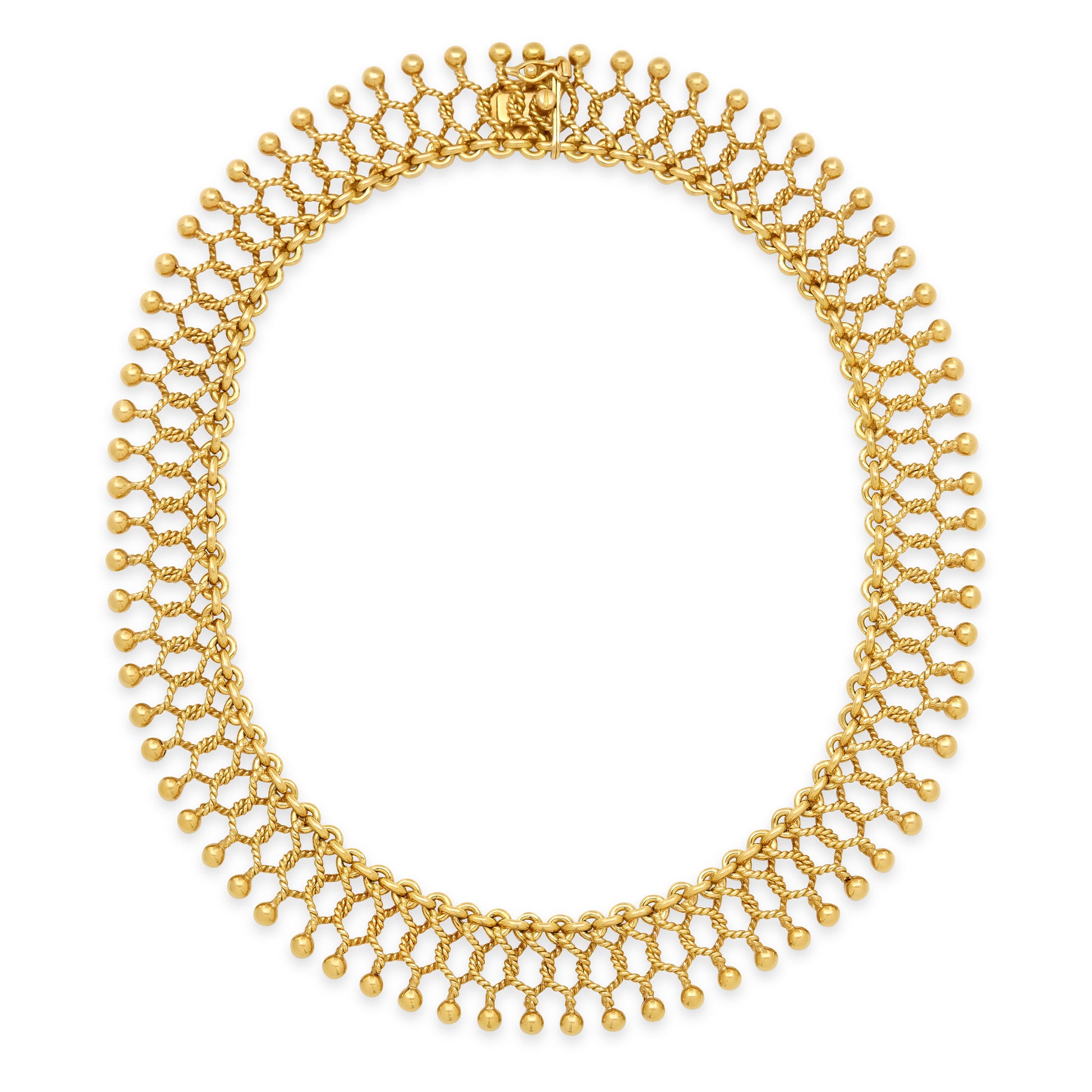 The fringe necklace comprising interwoven twisted rope texture lines, with high polish bead terminals, in 18k gold. Signed Tiffany & Co., Made in Italy.