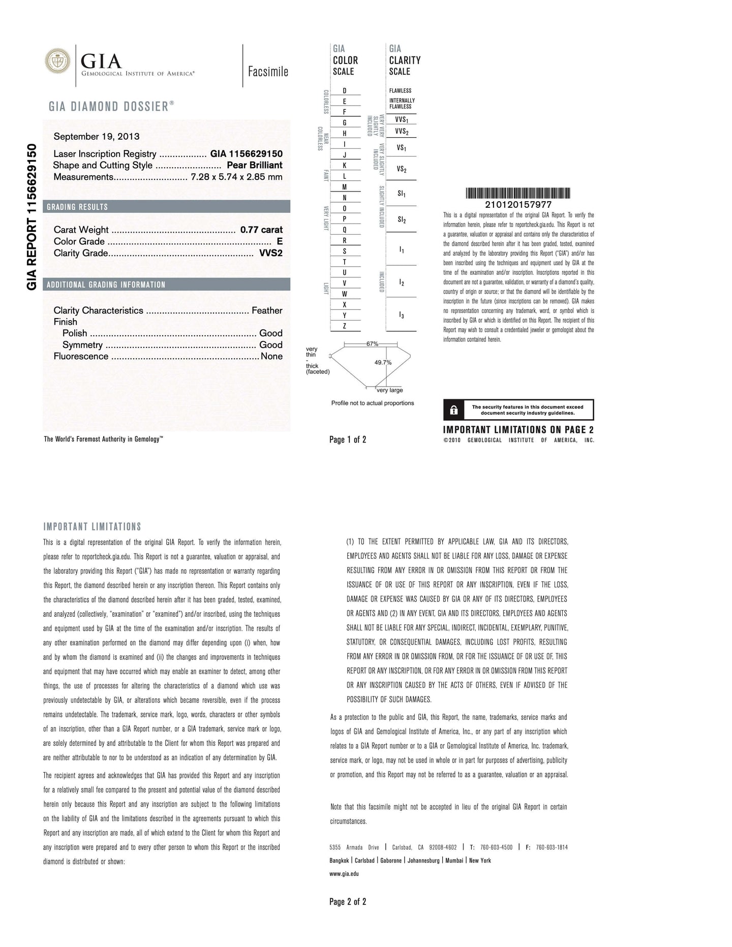 - Gem Stone: Diamond 0.77 carats Pear cut E/VVS2 GIA 1156629150