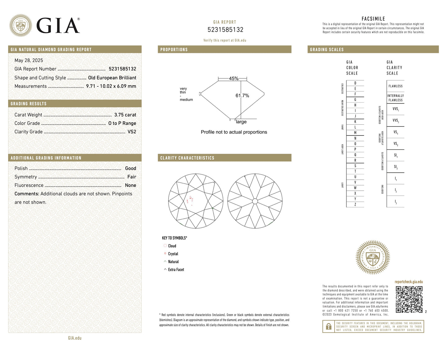 - Gem Stone: Diamond 3.75 carats Old European cut O-P/VS2 GIA 5231585132