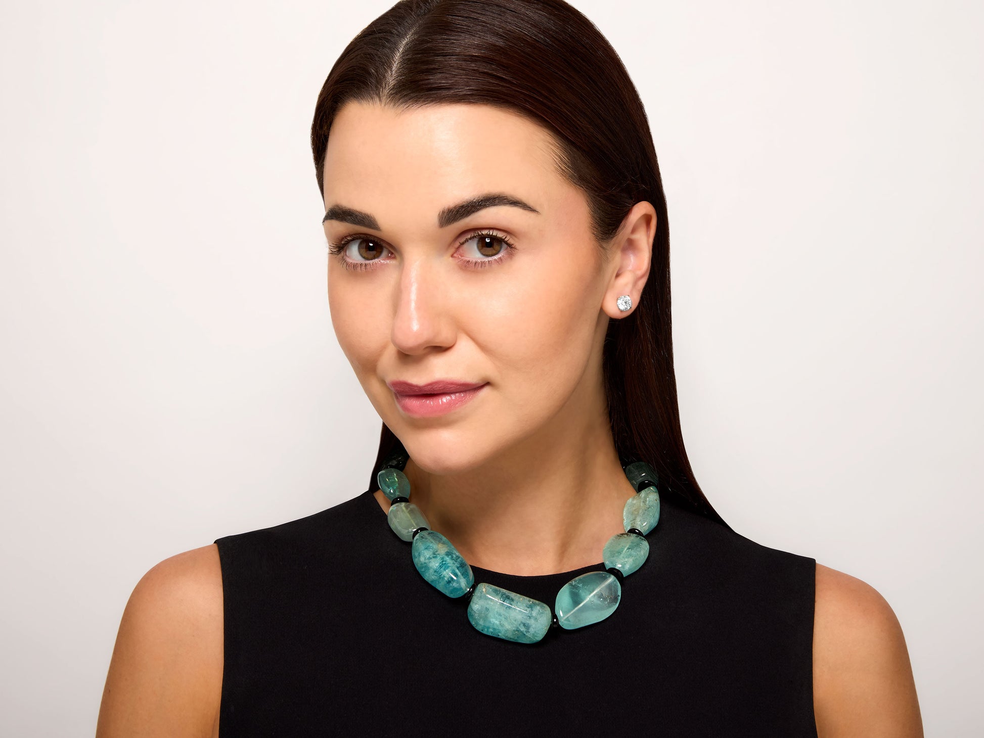 Aquamarine Bead Necklace with 18K Gold and Diamond Clasp