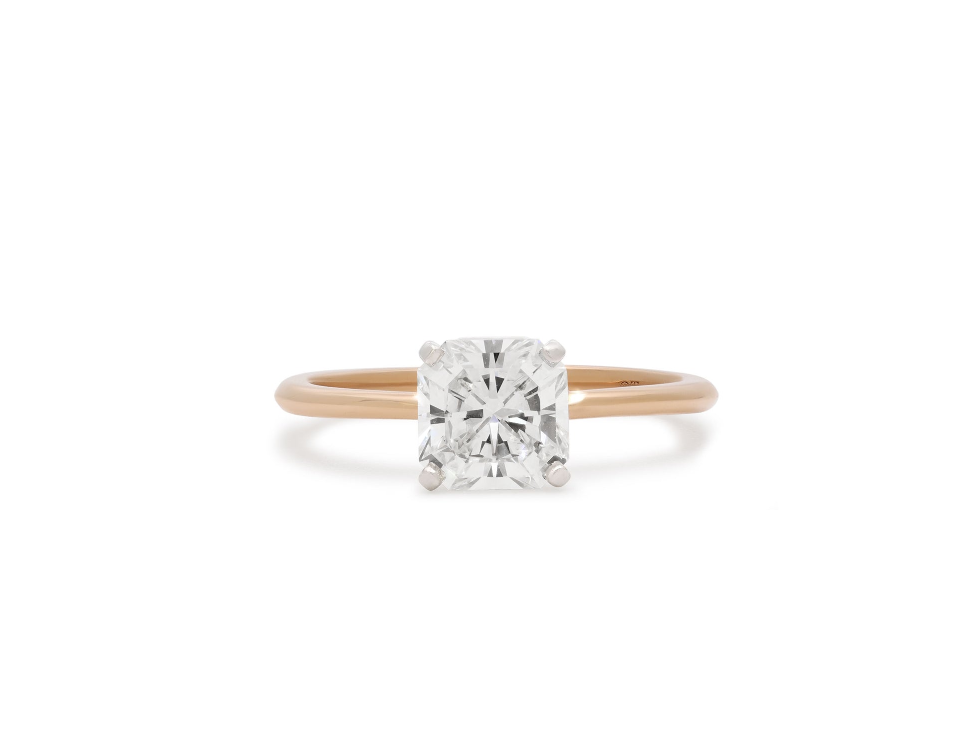The 1.26 carats square-cut diamond in a platinum four prong setting, to the 18k rose gold knife-edge band. Signed Tiffany & Co.