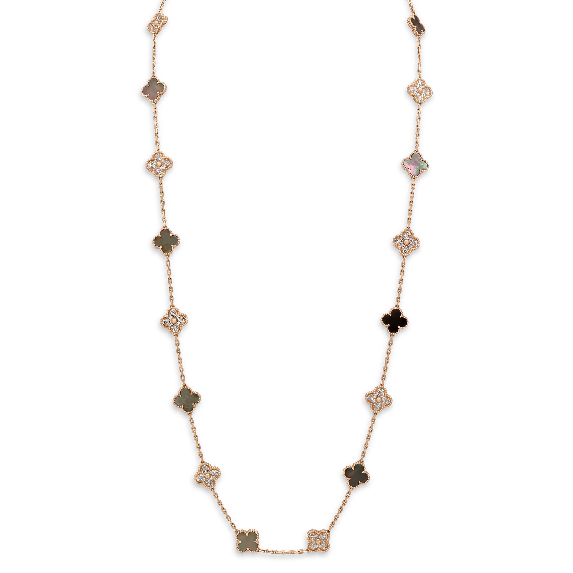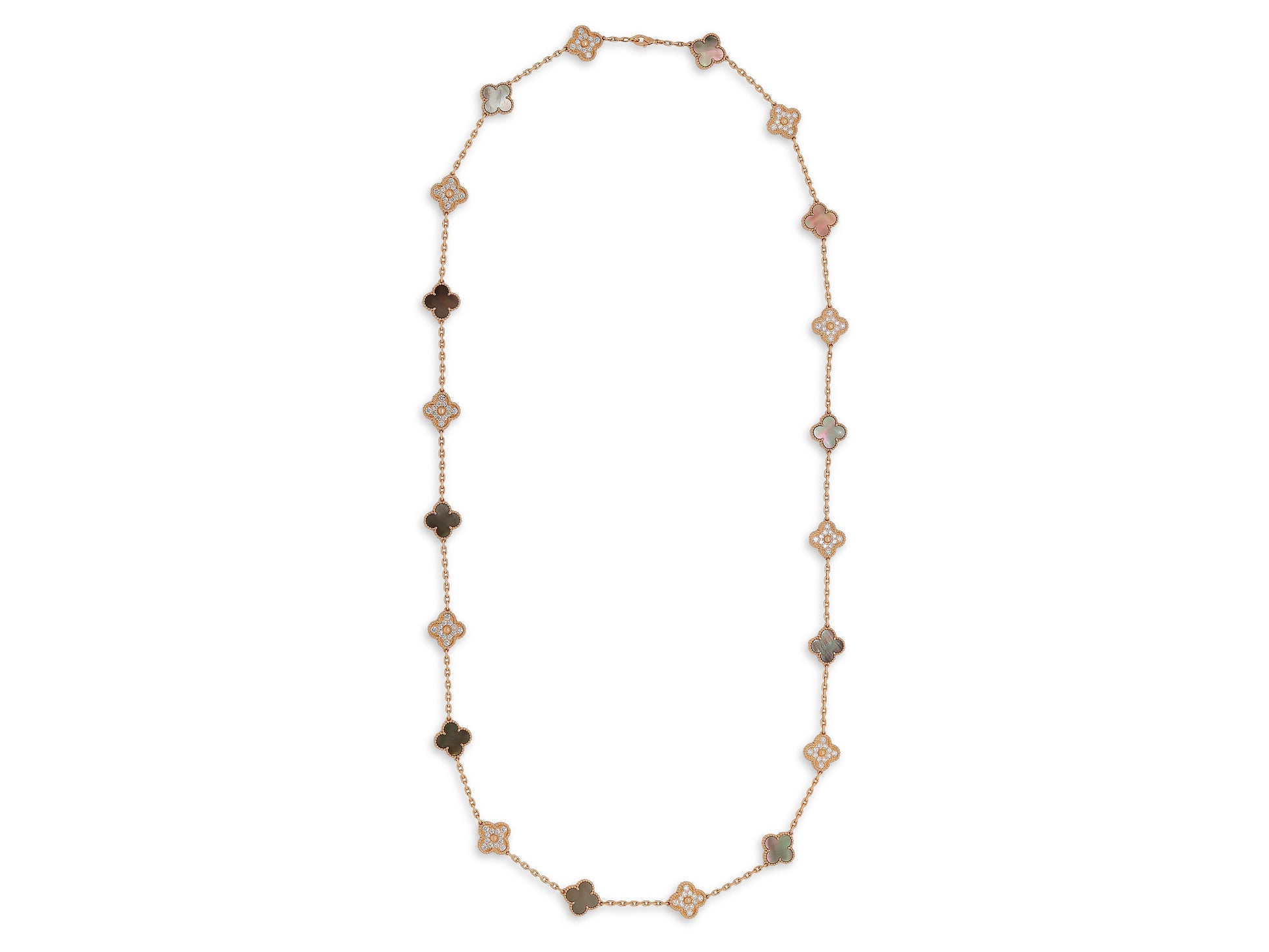 Van Cleef & Arpels 'Vintage Alhambra' Mother-of-Pearl and Diamond Necklace, 20 Motifs, in 18K Rose Gold