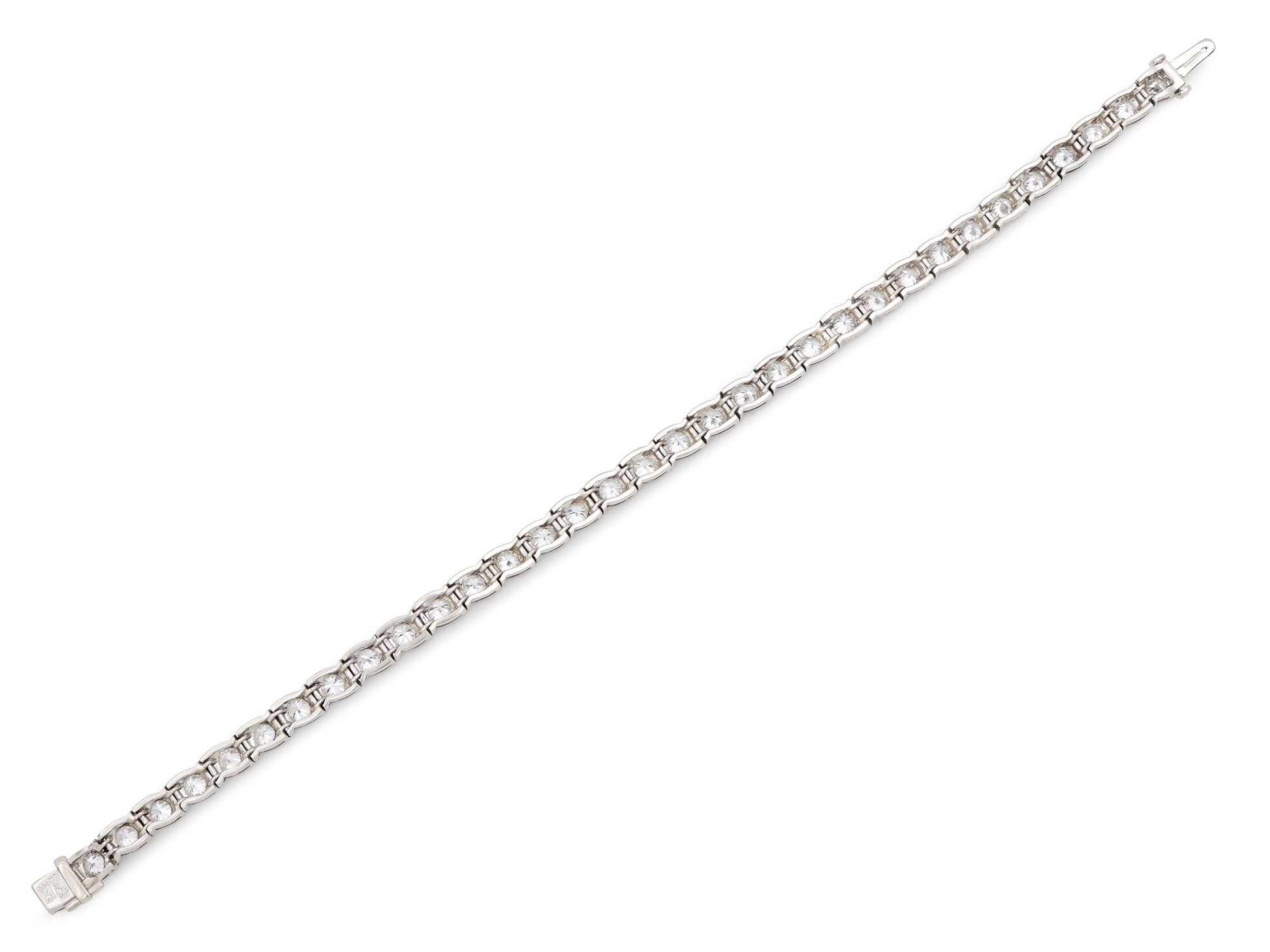 Composed of 34 angled navette diamond links, in platinum. With Waslkioff "W" hallmark.