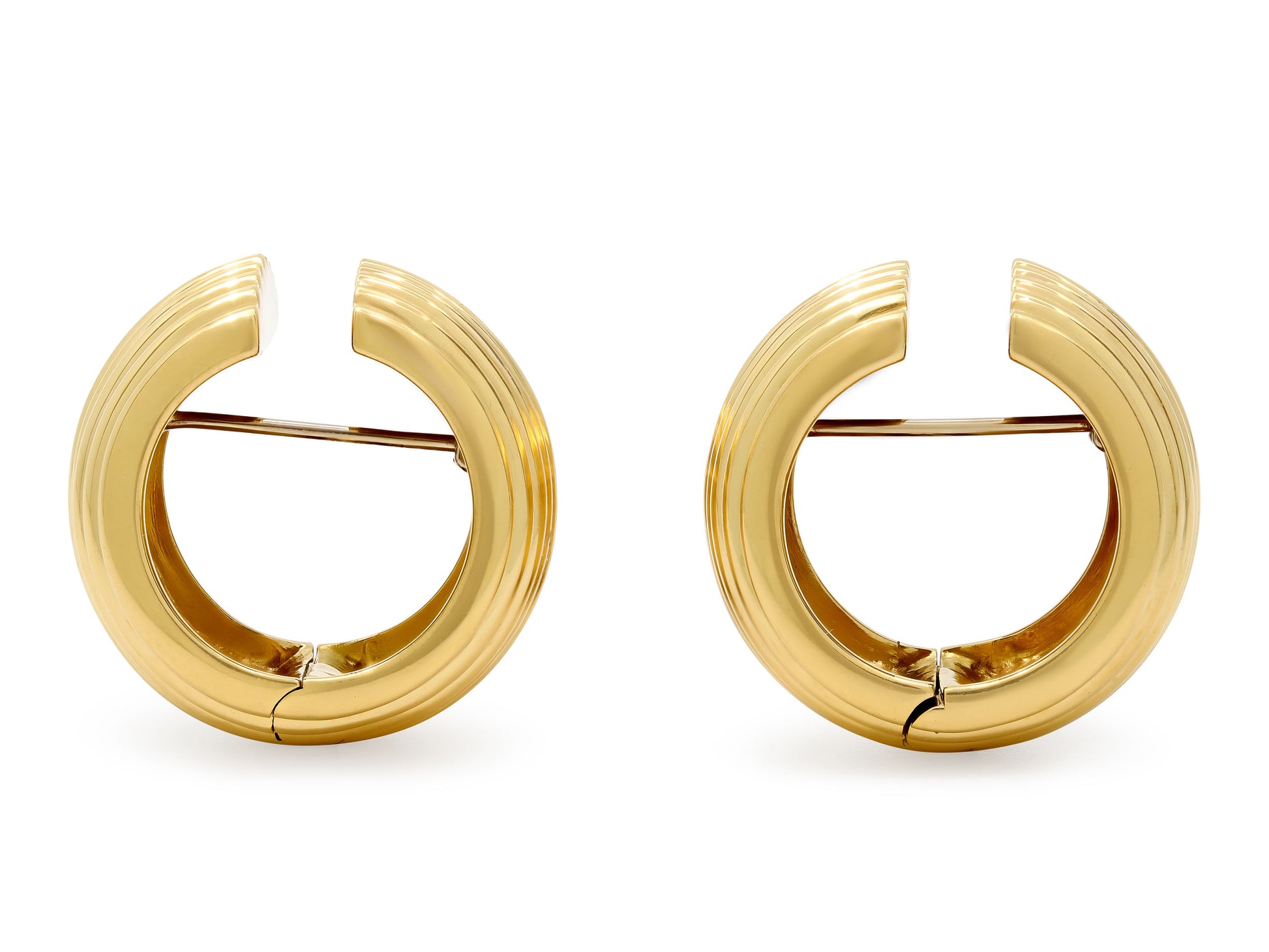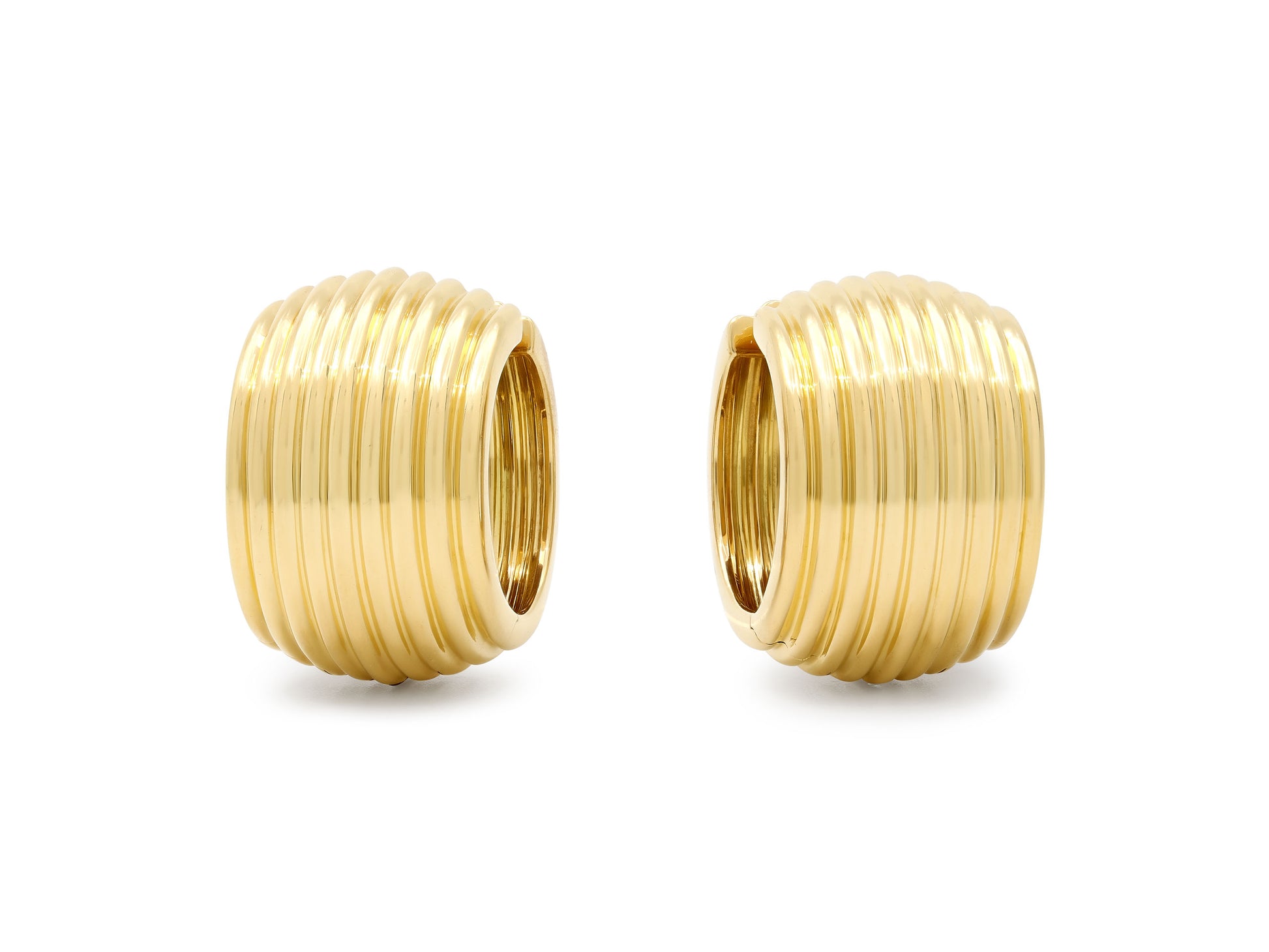 Each hinged, wide hoop of fluted design, in 18k yellow gold. Signed Tiffany & Co.