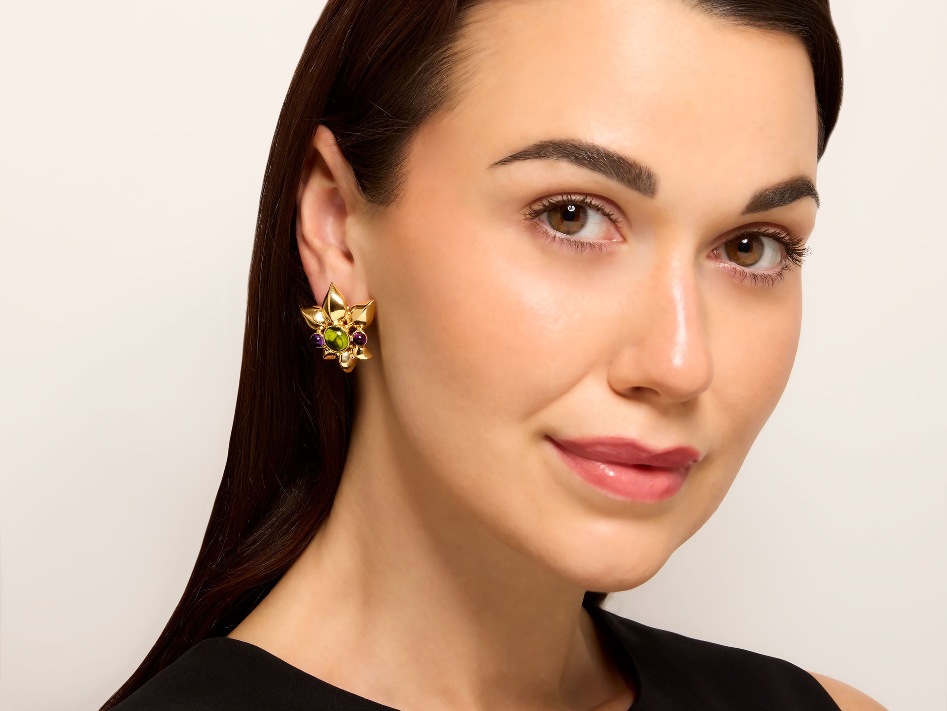 Verdura Peridot and Amethyst Floral Earrings in 18k Gold