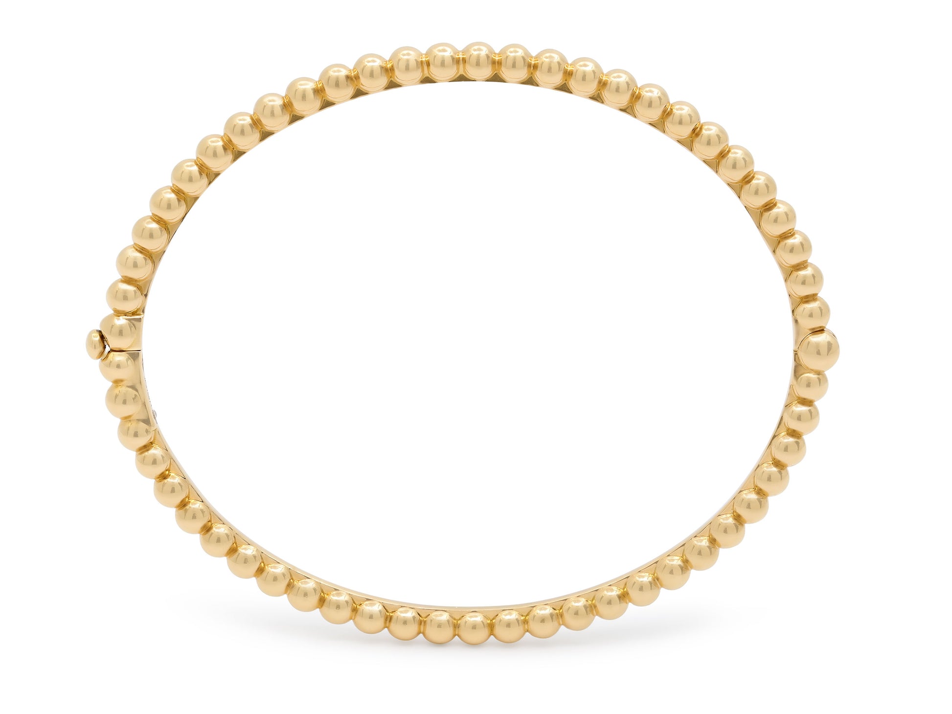 The hinged bangle composed of a single row of beaded high polish 18k yellow gold. Signed VCA for Van Cleef & Arpels, with French hallmarks. Includes manufacturer's box and paperwork.