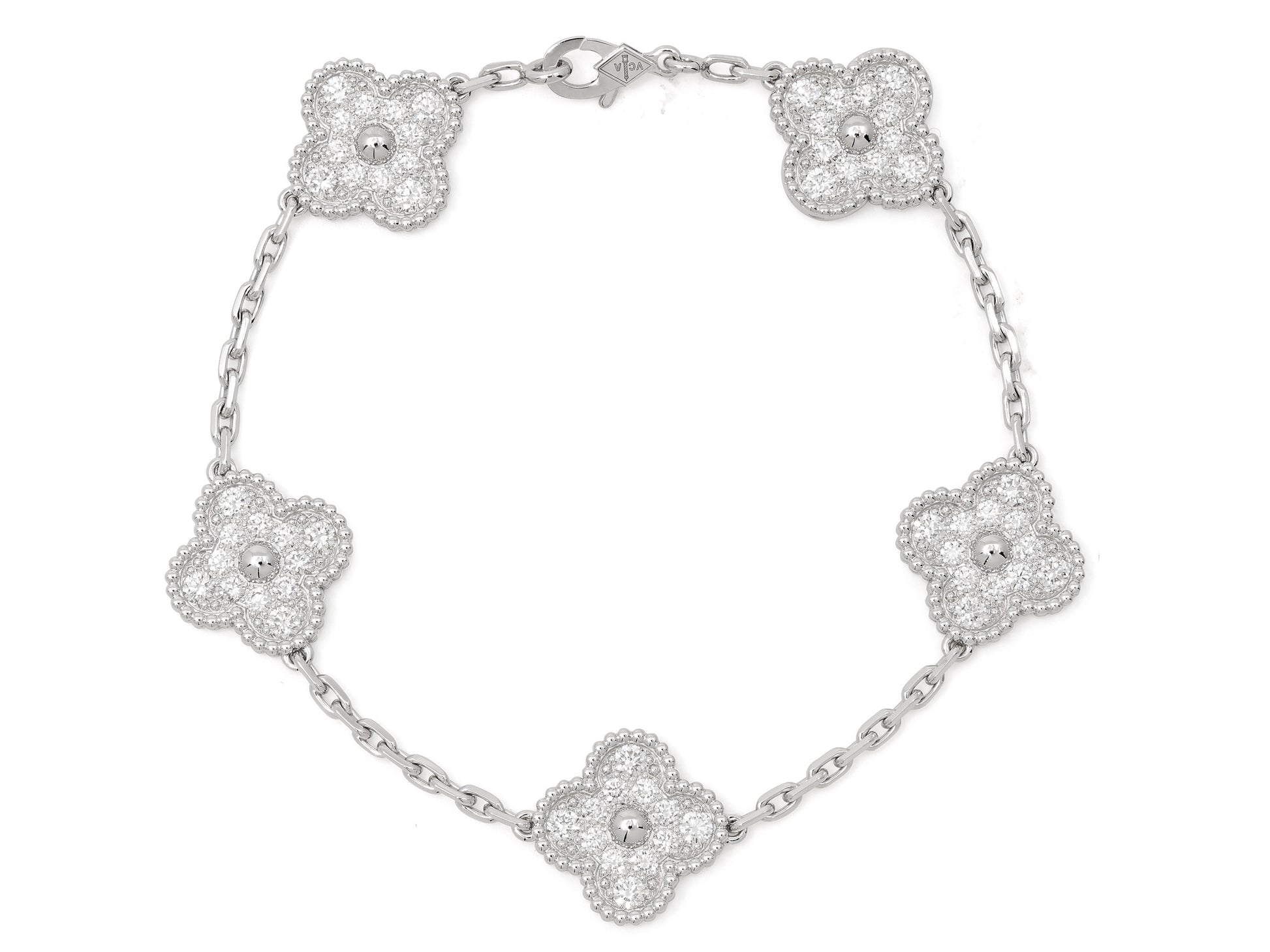 Van Cleef & Arpels 'Vintage Alhambra' Diamond Bracelet, 5 Motifs, in 18K White Gold
