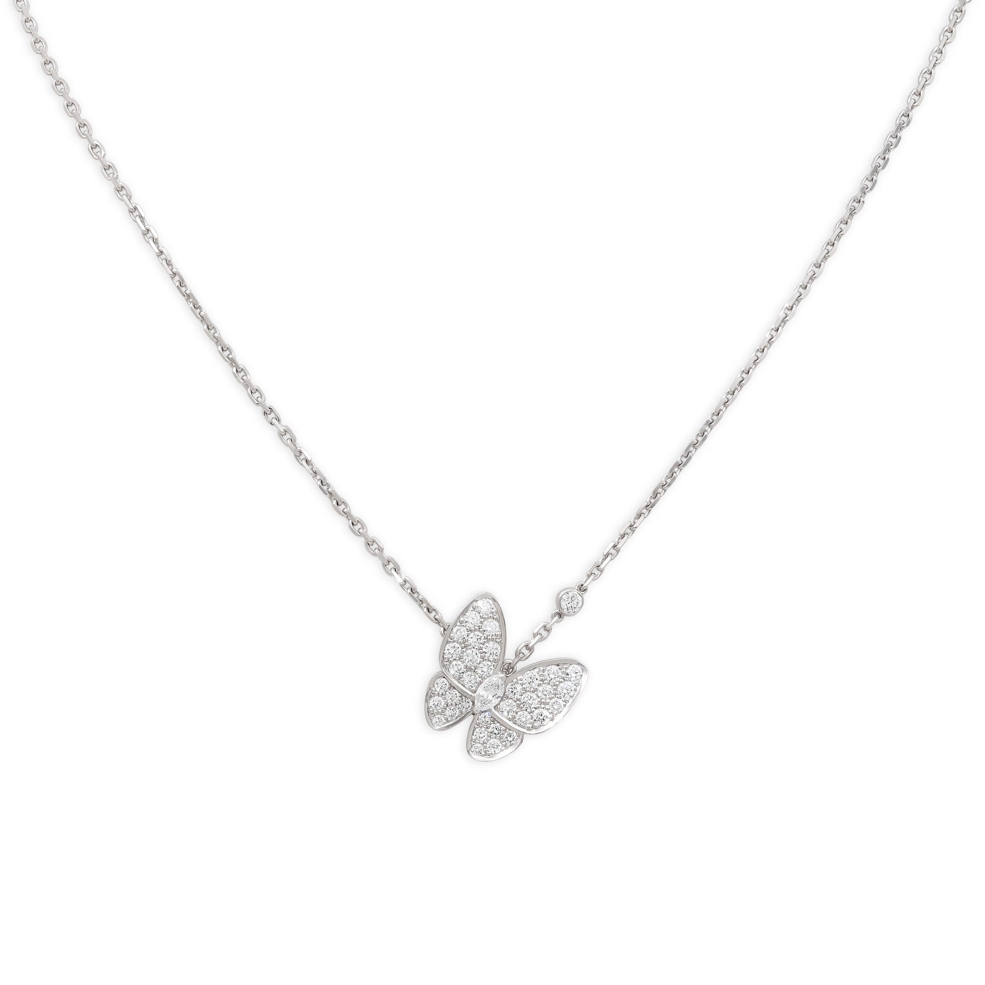 Van Cleef & Arpels 'Two Butterfly' Diamond Pendant 18K White Gold